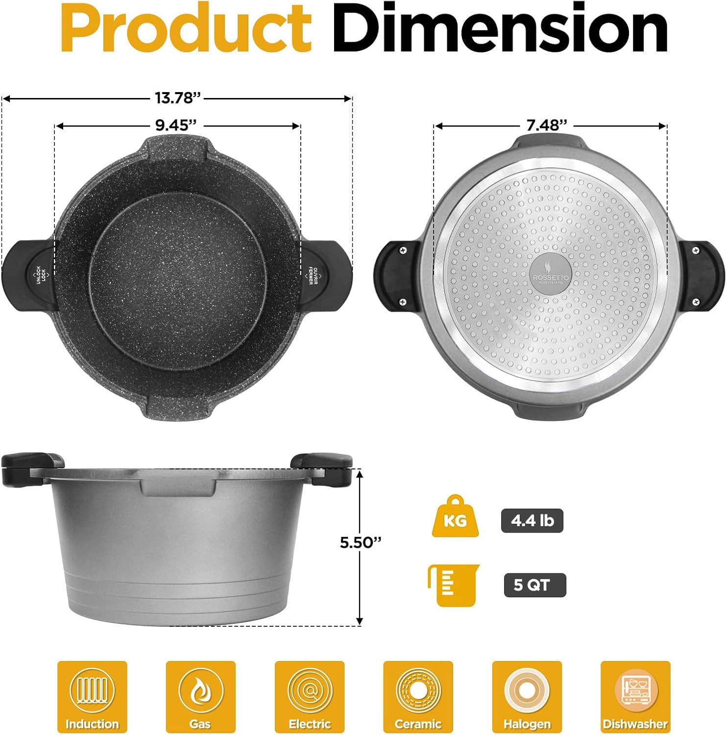 - Spacious 5QT Capacity โ Ideal for cooking large portions of pasta, soups, stews, and boiling vegetablesโperfect for family meals and gatherings.