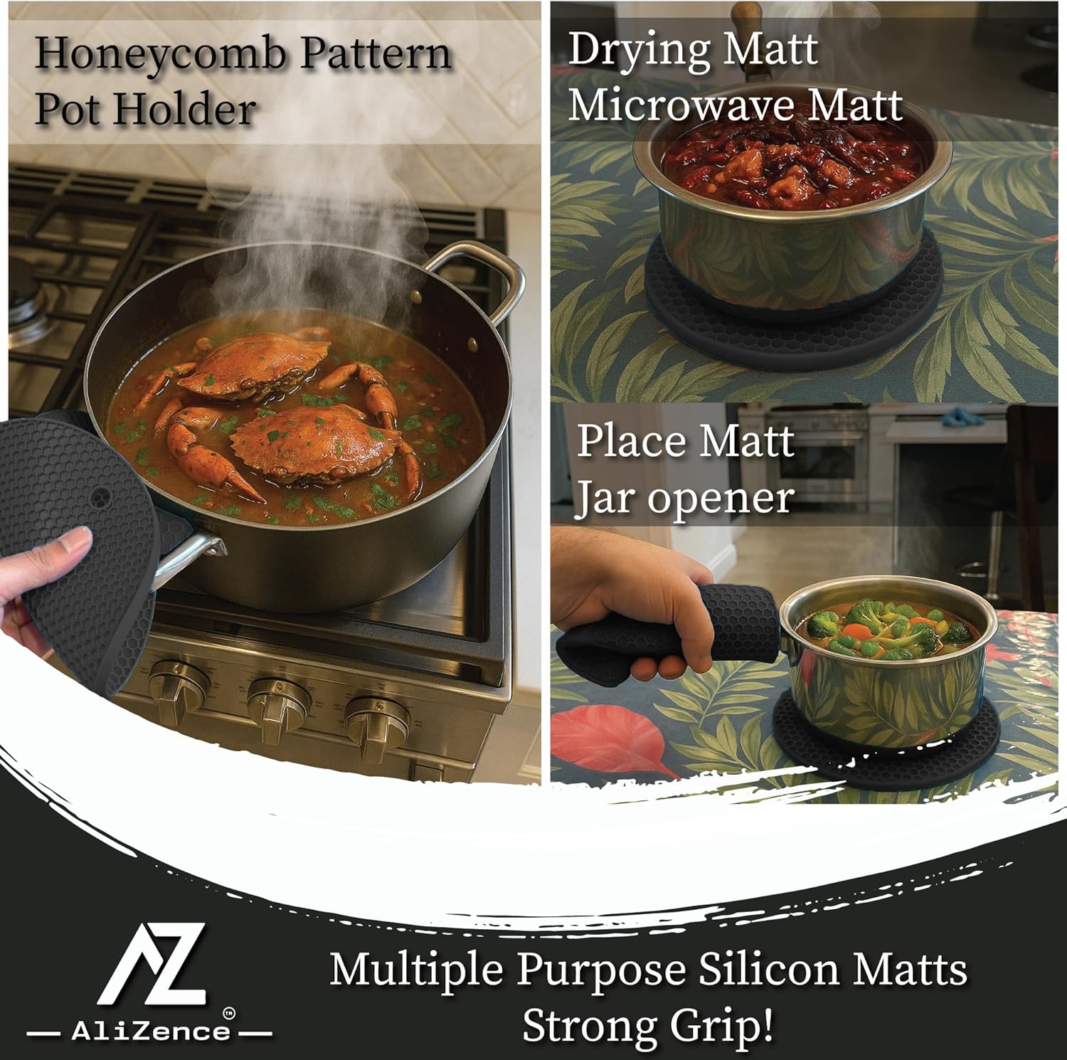 - Eco-Friendly & Safe: Sustainability is a core focus of the AliZence Kitchen Essentials 6-Piece Set. Made from non-toxic, BPA-free silicone, offering an environmentally responsible and safe solution for your kitchen. 100% Money Back Gurantee!