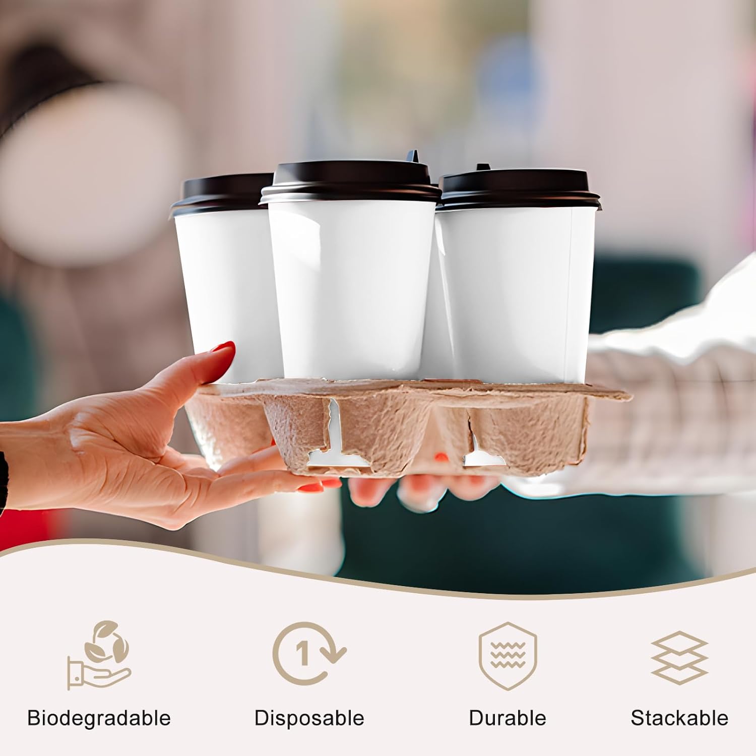Coffee Cup Holder Disposable Cup Holder Tray, Four Cup Carrier Tray 50 Pack,Biodegradable, Eco-Friendly Drink Carrier For Delivery Of Hot Or Cold Drinks(Four-cup size tray)