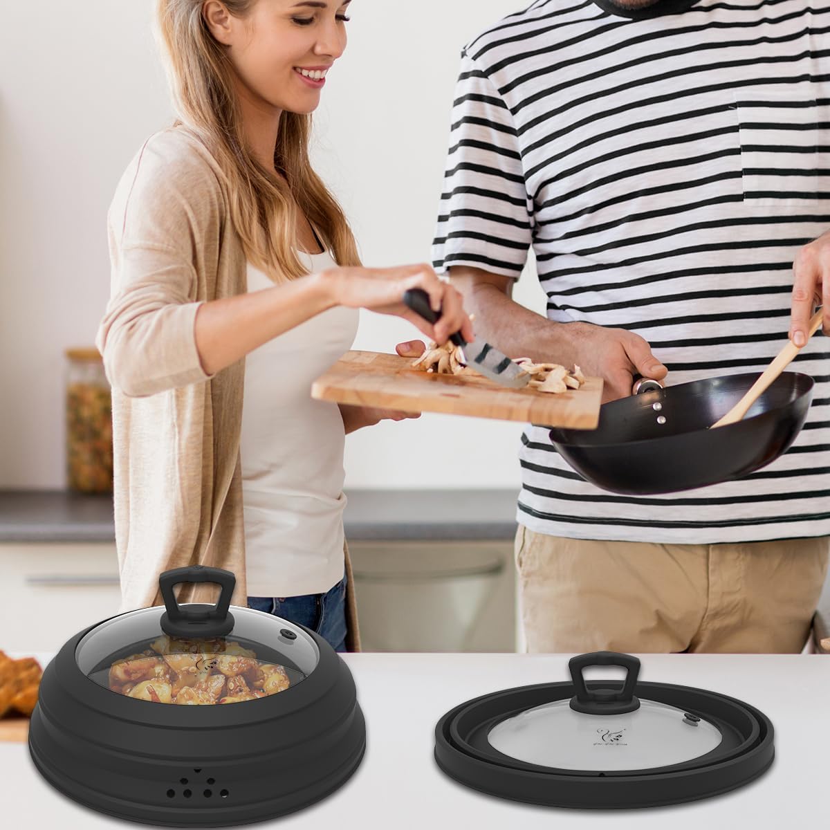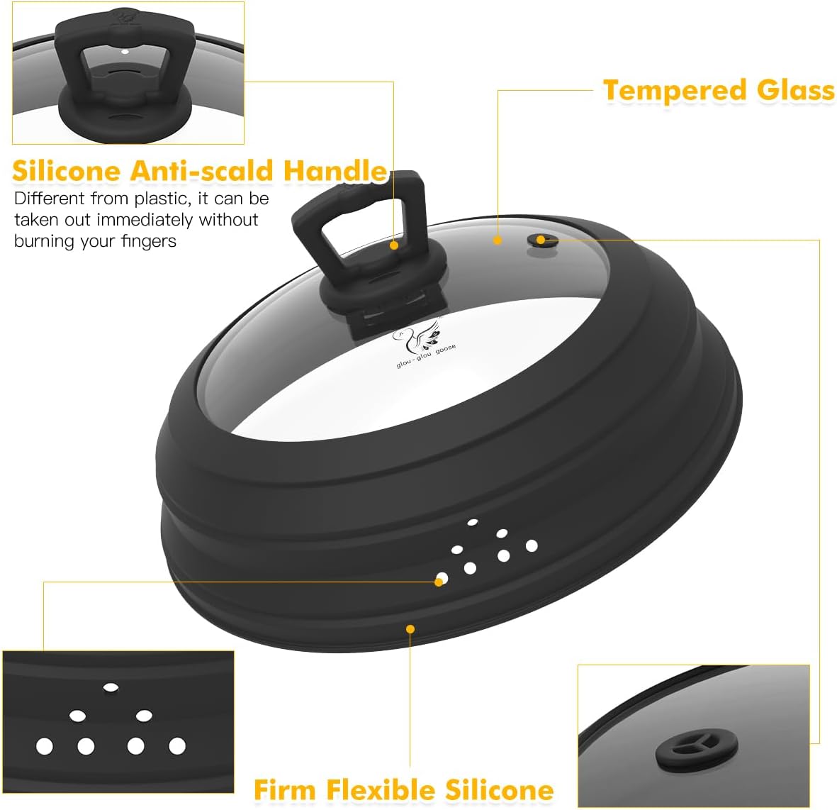 Microwave Splatter Cover Vented Glass Splatter Guard Lid with Collapsible Silicone for Food as Pot Covers 11.8 inch Large 2 Pack