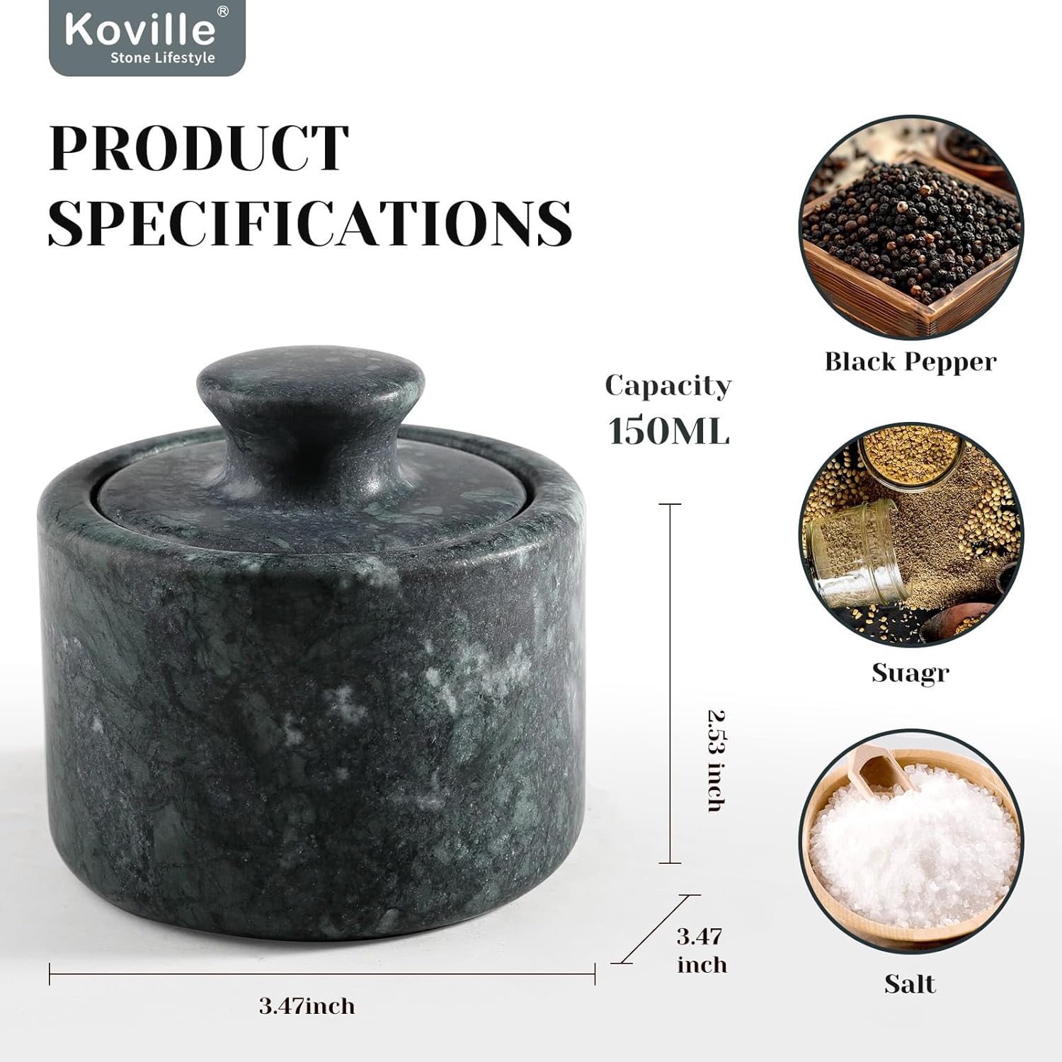 - Naturally Cool & Moisture-Proof Interior Marble’s dense structure provides thermal insulation, helping regulate temperature and prevent condensation inside the jar. Ideal for moisture-sensitive ingredients like sea salt, dried thyme, or artisan spice blends