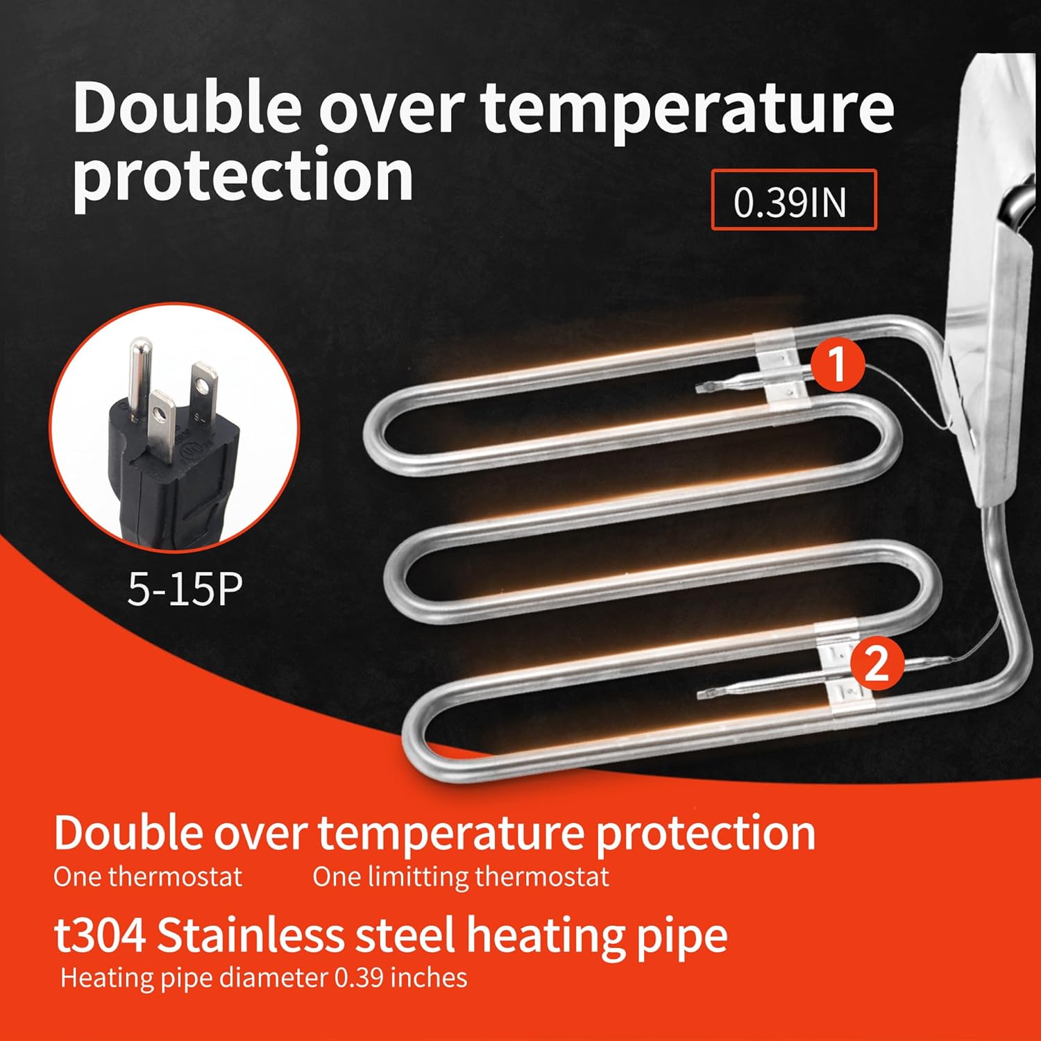 - Temperature Control: This deep fryer features temperature controls and thermostatic controls, temperature can be adjusted from 140°F to 392°F (60°C-200°C), you can set the optimal temperature depending on what you cook. An installed guard plate effectively balances oil temperature and ensures food is fried evenly. This double deep fryer will be automatically shut off when the temperature is over 230°C (446°F) or reach the temperature you set
