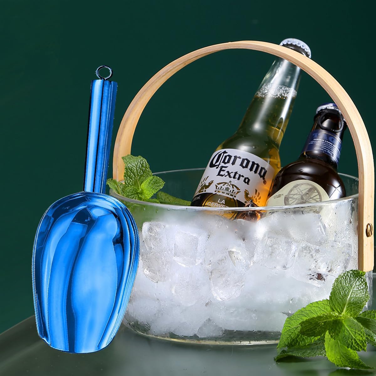 Metal Ice Scoop,Kitchen Ice Scooper for Ice Maker,Stainless Steel Small Ice Scooper for Freezer,Kitchen Gadgets Cookie Flour Pet Dog Food Scoop (Blue, 3oz)