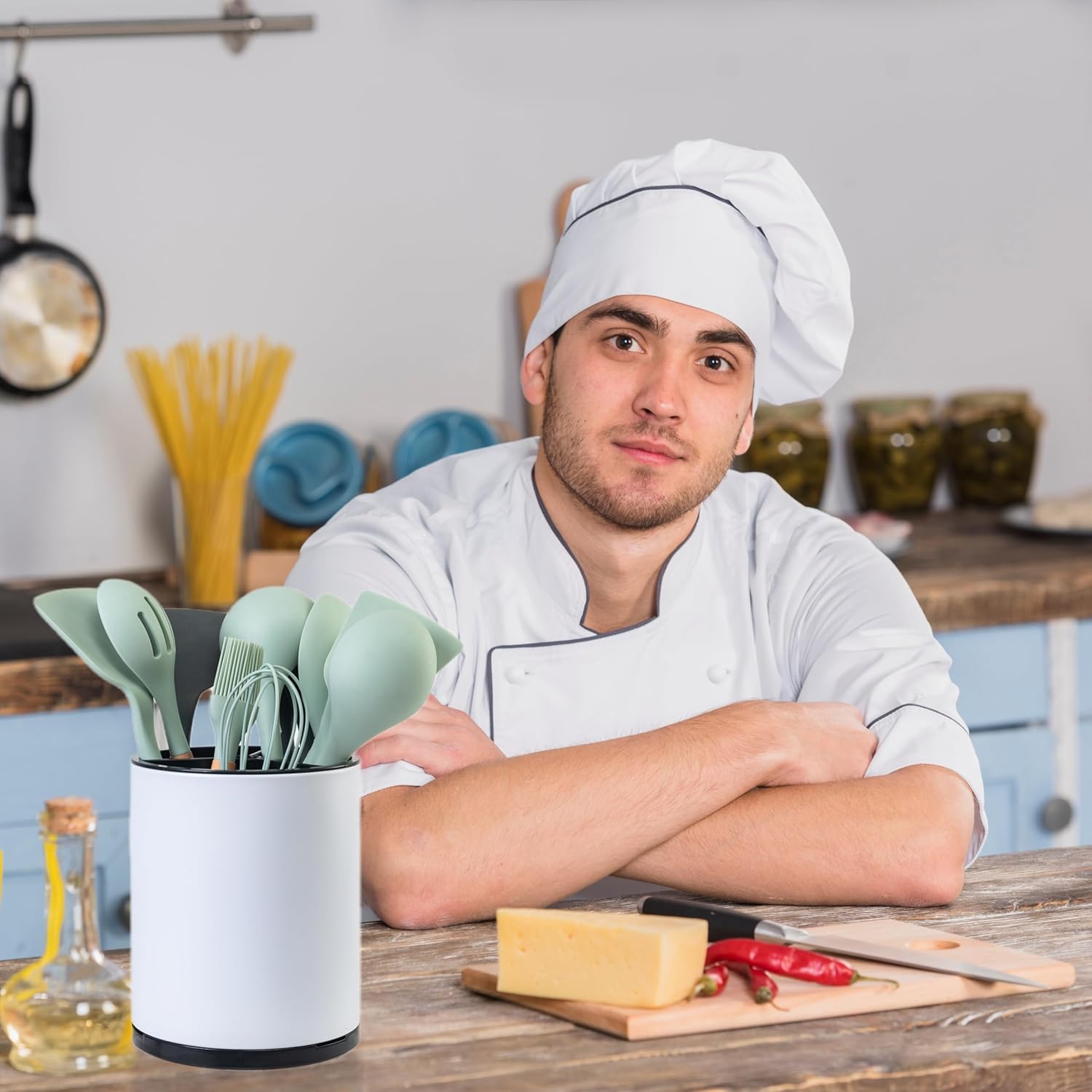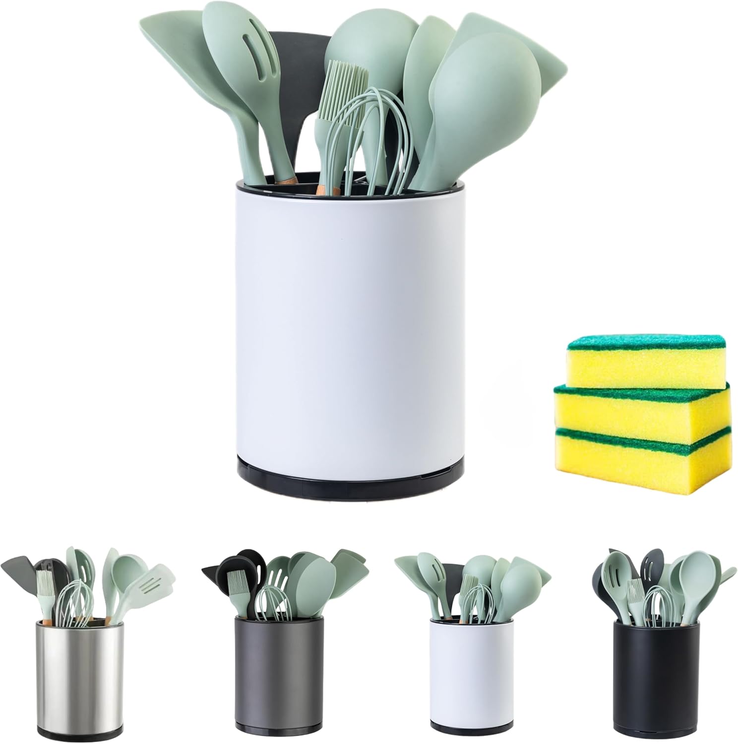 - Smooth 360° Rotation: Experience unparalleled convenience with our smooth-gliding, 360-degree rotation feature. Simply spin the holder to access any utensil you need, eliminating the frustration of searching through a tangled mess. This innovative design ensures that your utensils are always within easy reach, making your kitchen tasks more efficient and enjoyable.
