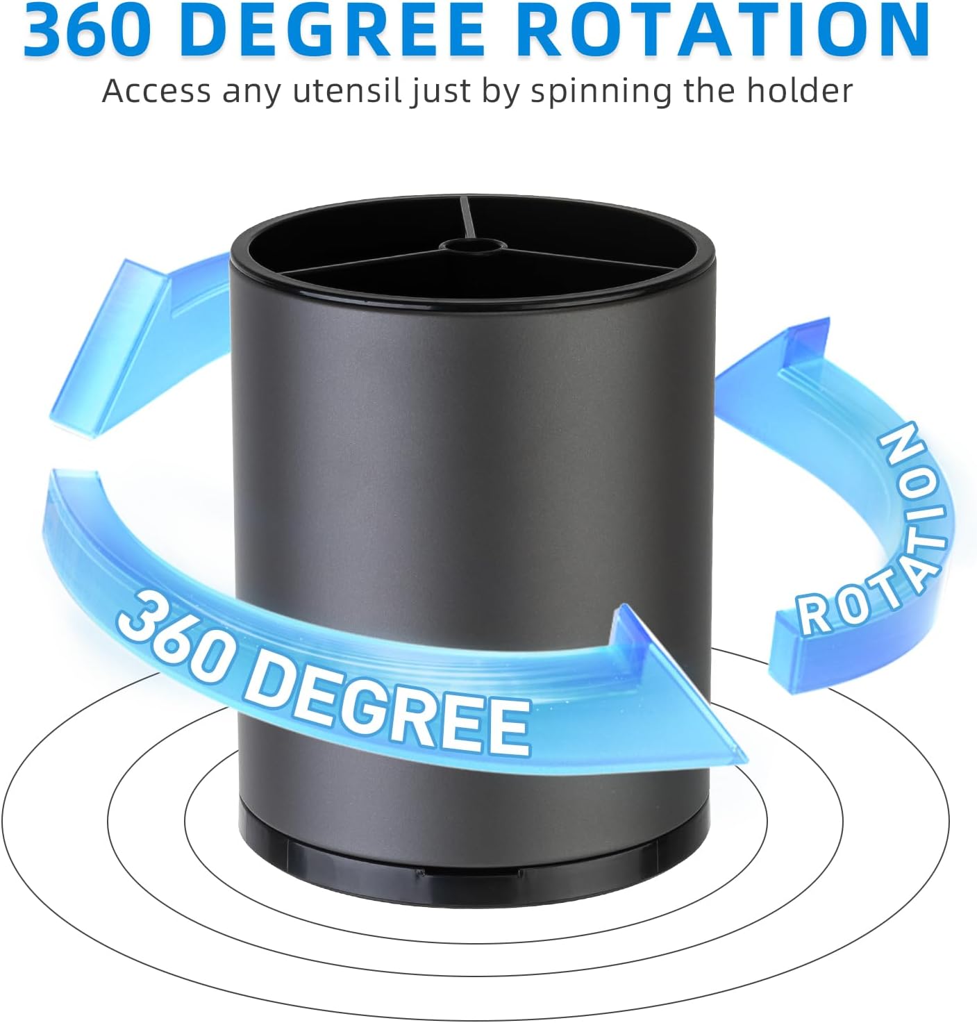 - Smooth 360° Rotation: Experience unparalleled convenience with our smooth-gliding, 360-degree rotation feature. Simply spin the holder to access any utensil you need, eliminating the frustration of searching through a tangled mess. This innovative design ensures that your utensils are always within easy reach, making your kitchen tasks more efficient and enjoyable.