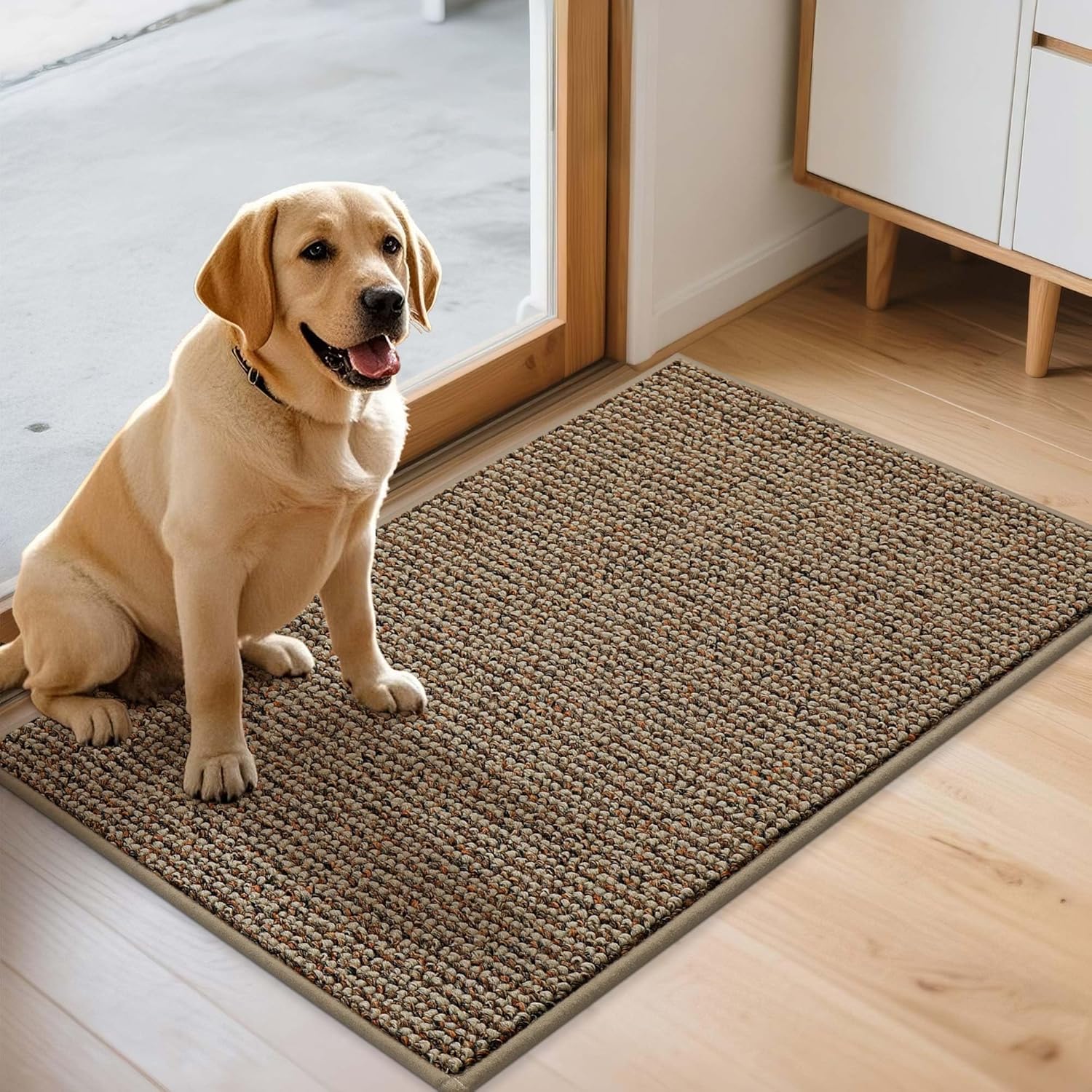 JSEI Dirt Trapper Door Mat 24"x36" Non-Slip Washable Entrance Mat, Dog Doormats, Absorbent & Fade-Resistant Floor Mats, Low Profile Welcome Mats for Entryway, Front Door, and Inside Entrance, Beige