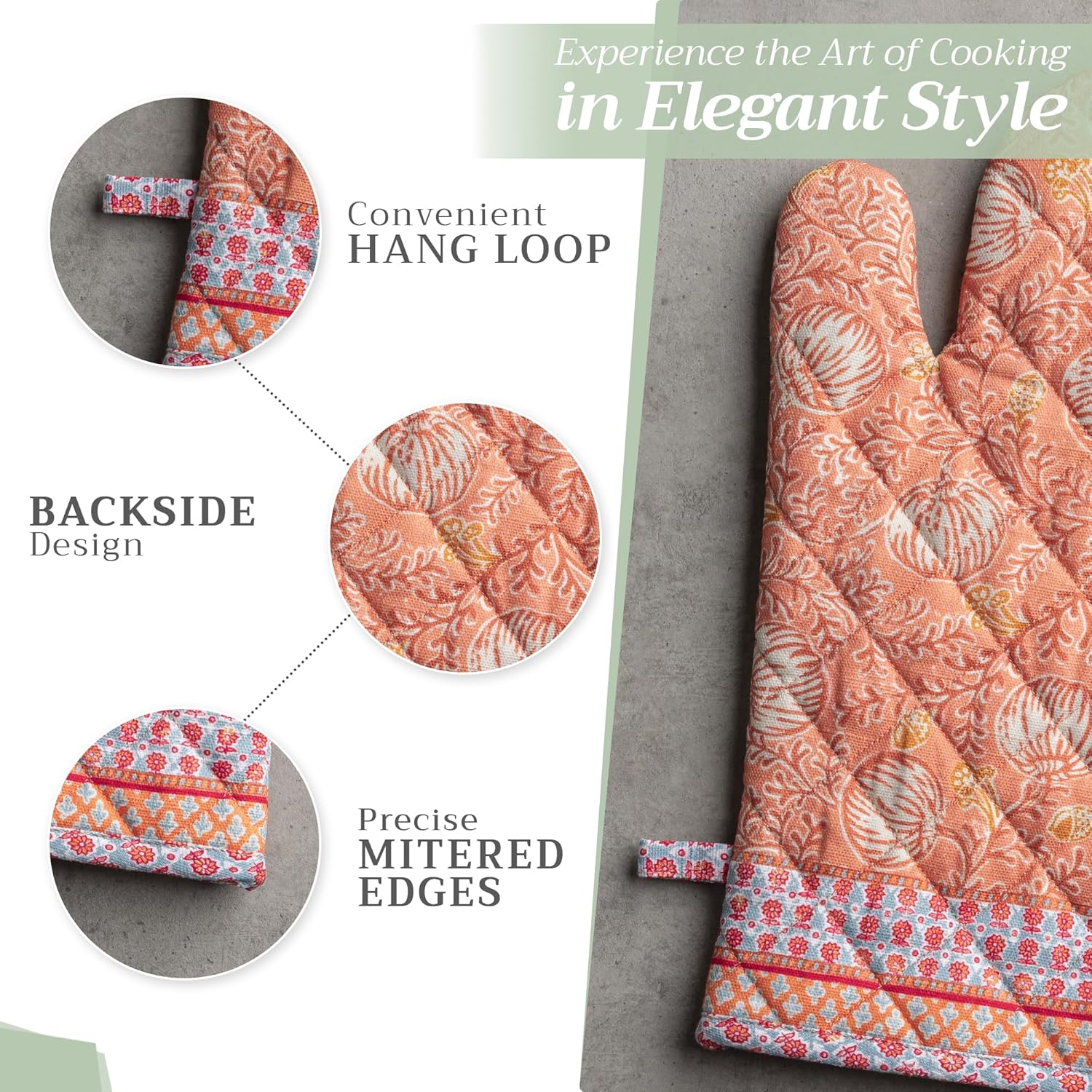 Maison d' Hermine Oven Gloves 100% Cotton Oven Mitt 7" x 13" with Loop Heat Resistant, BBQ, Cooking Gloves, Baking, Grilling, Kitchen, Handling Hot Pans (Pack of 1, Harvest Festival)