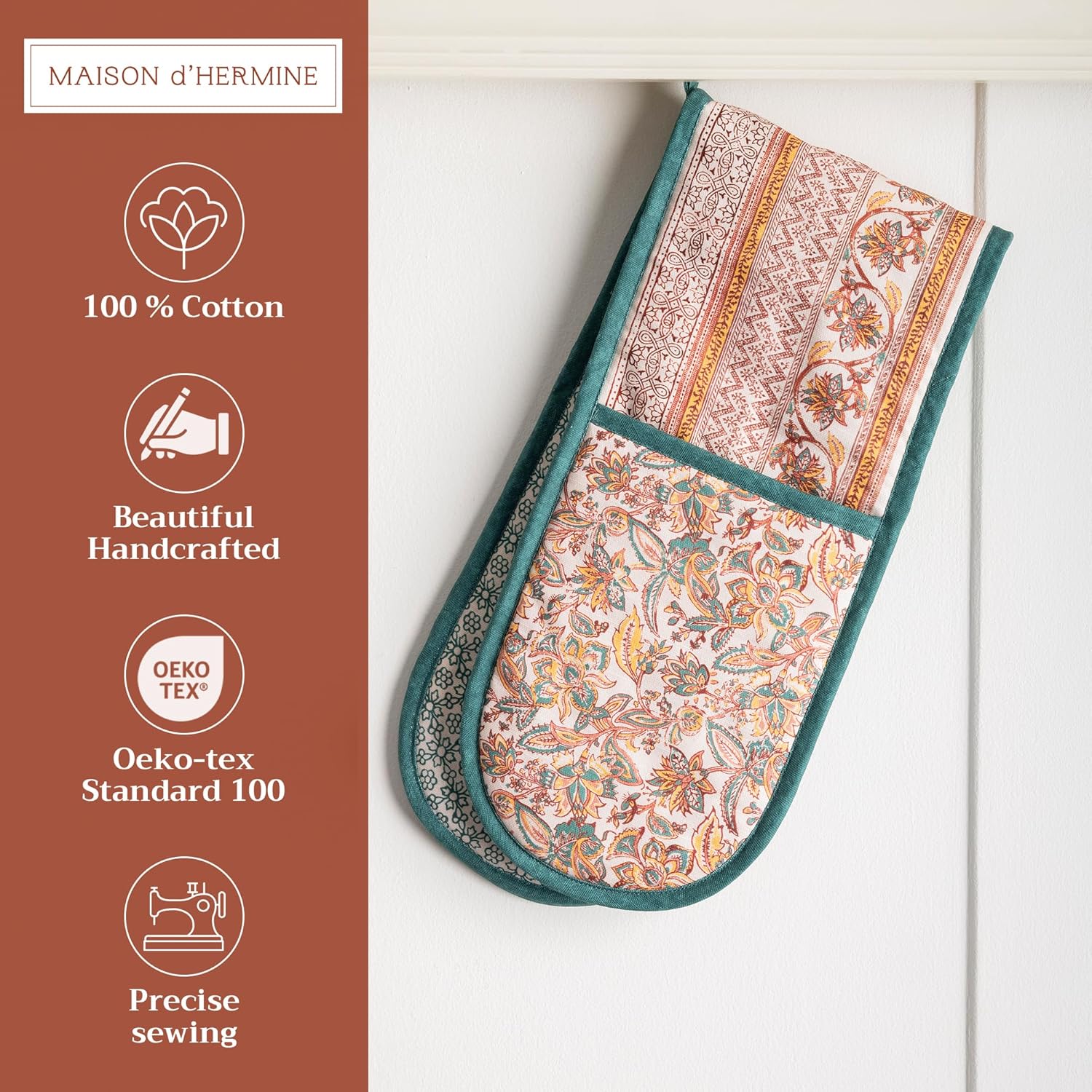 - 100% Quilted cotton: Crafted from premium quilted cotton for superior heat resistance and durability. This double oven mitt offers a soft, flexible grip and protects your hands during baking, roasting, or grilling