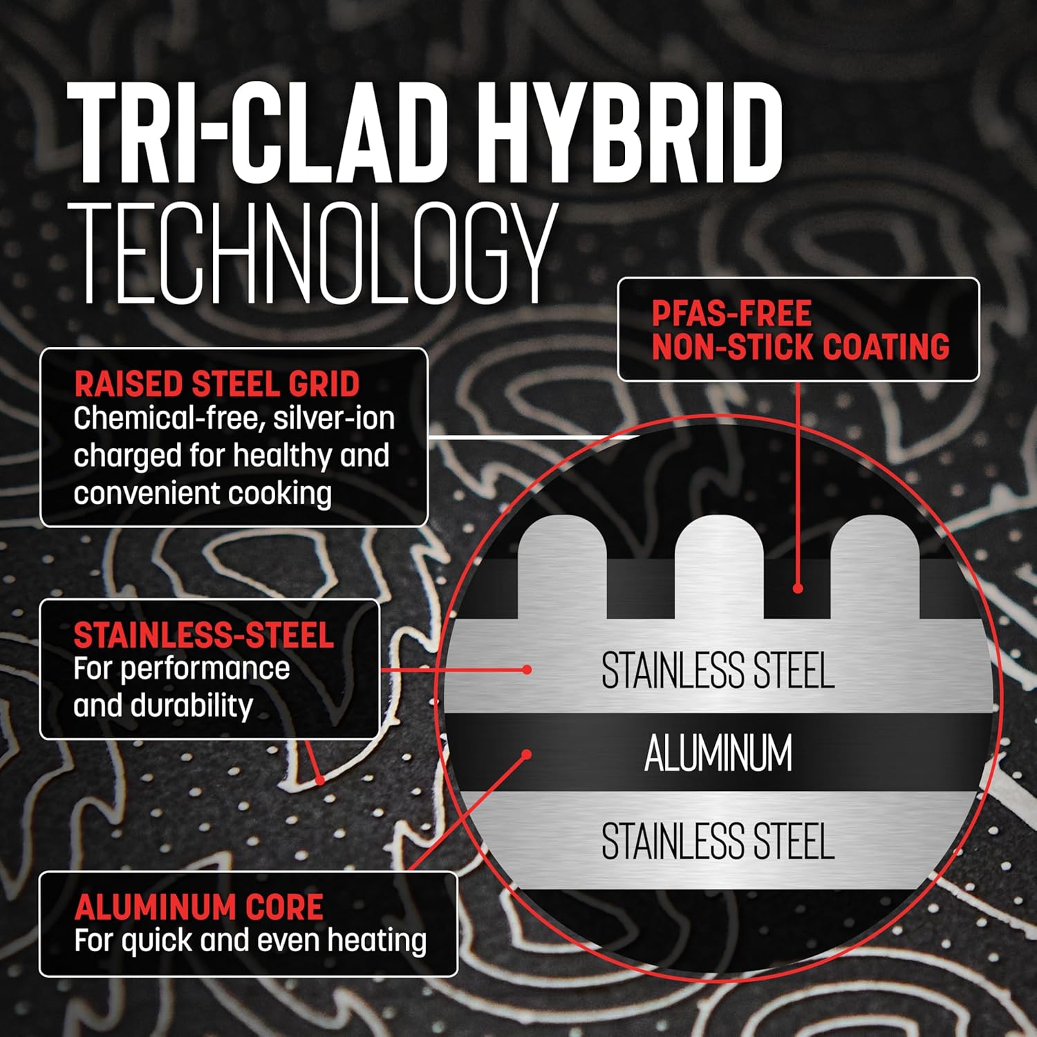 - PFAS-FREE NONSTICK: Hell’s Kitchen Tri-Clad Hybrid cookware contains a diamond reinforced ceramic coating, free from forever chemicals and silver-ion charged for healthy cooking.
