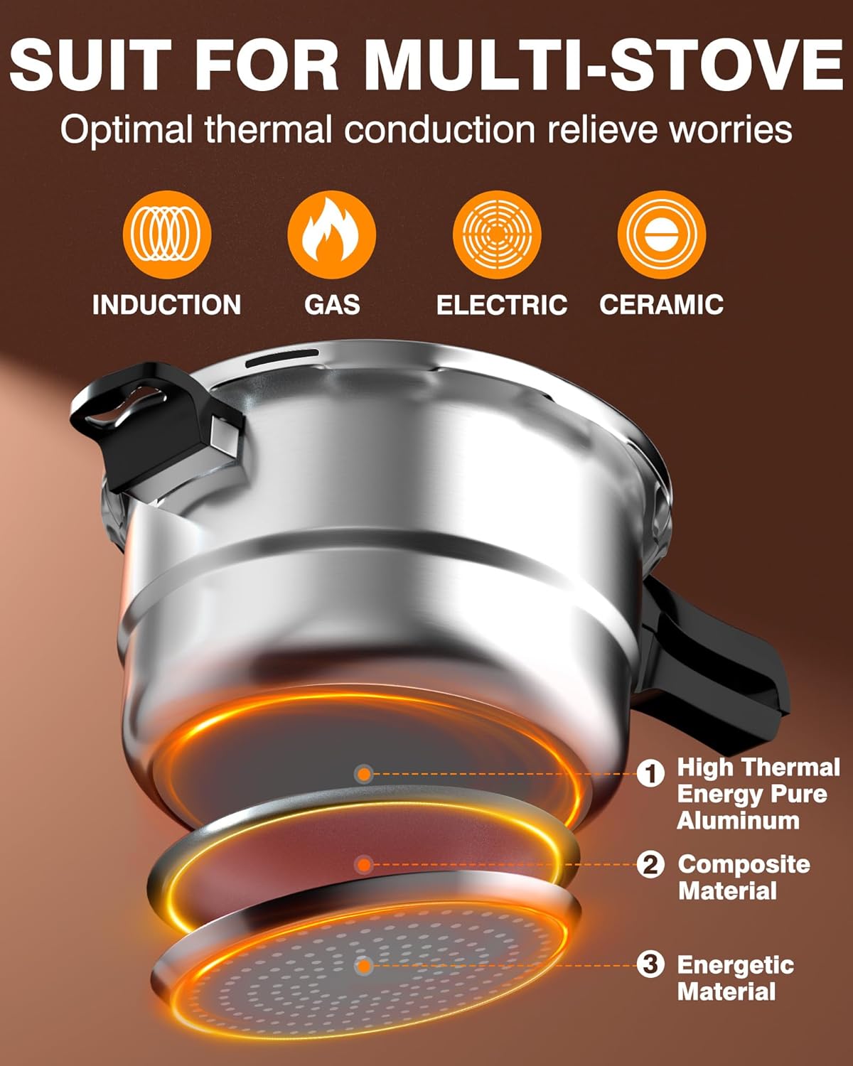 - MULTIPLE SAFEGUARD DEVICES: The WantJoin aluminum pressure cooker features 8 safety features, acting as a fully armed bodyguard for your cooking. It includes a self-locking valve, limit valve, anti-blocking lid, safety valve, pressure release window, and more. Cook with peace of mind!