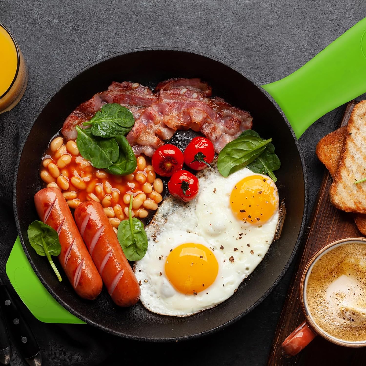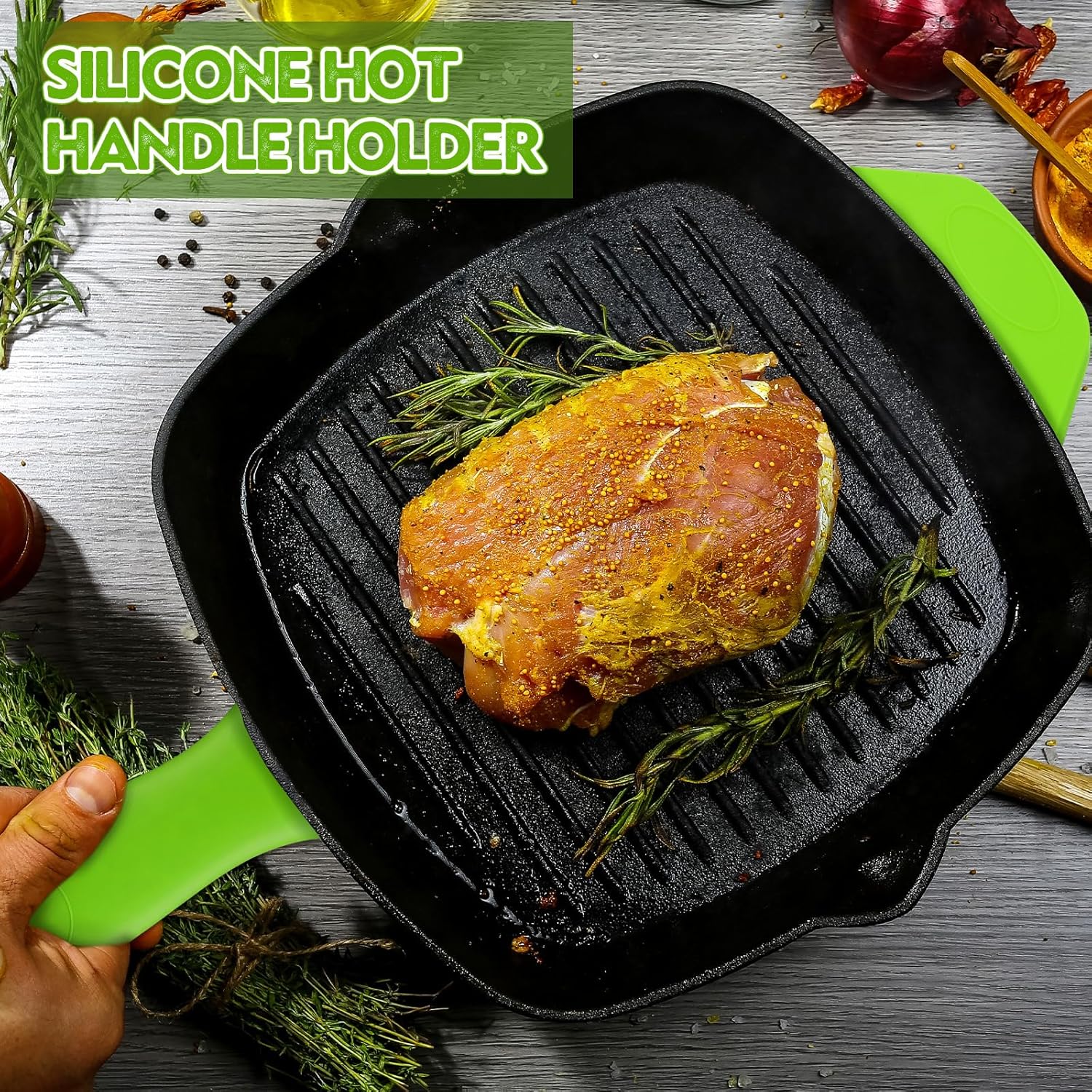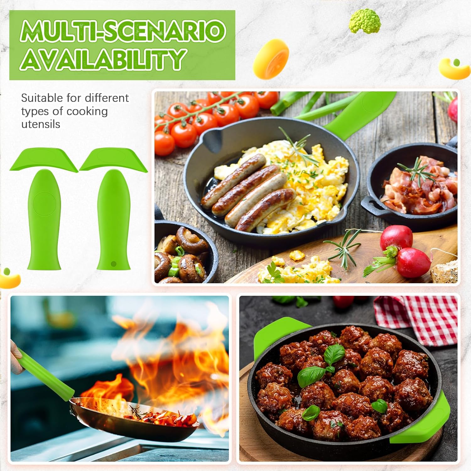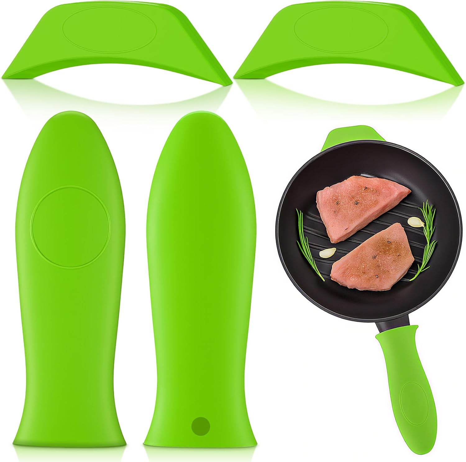 Domensi 4 Pcs Silicone Hot Handle Holder Set Cast Iron Skillet Handle Covers Heat Resistant Silicone Assist Handle Holder for Frying Pans Cast Iron Skillet Griddles Cookware(Green)
