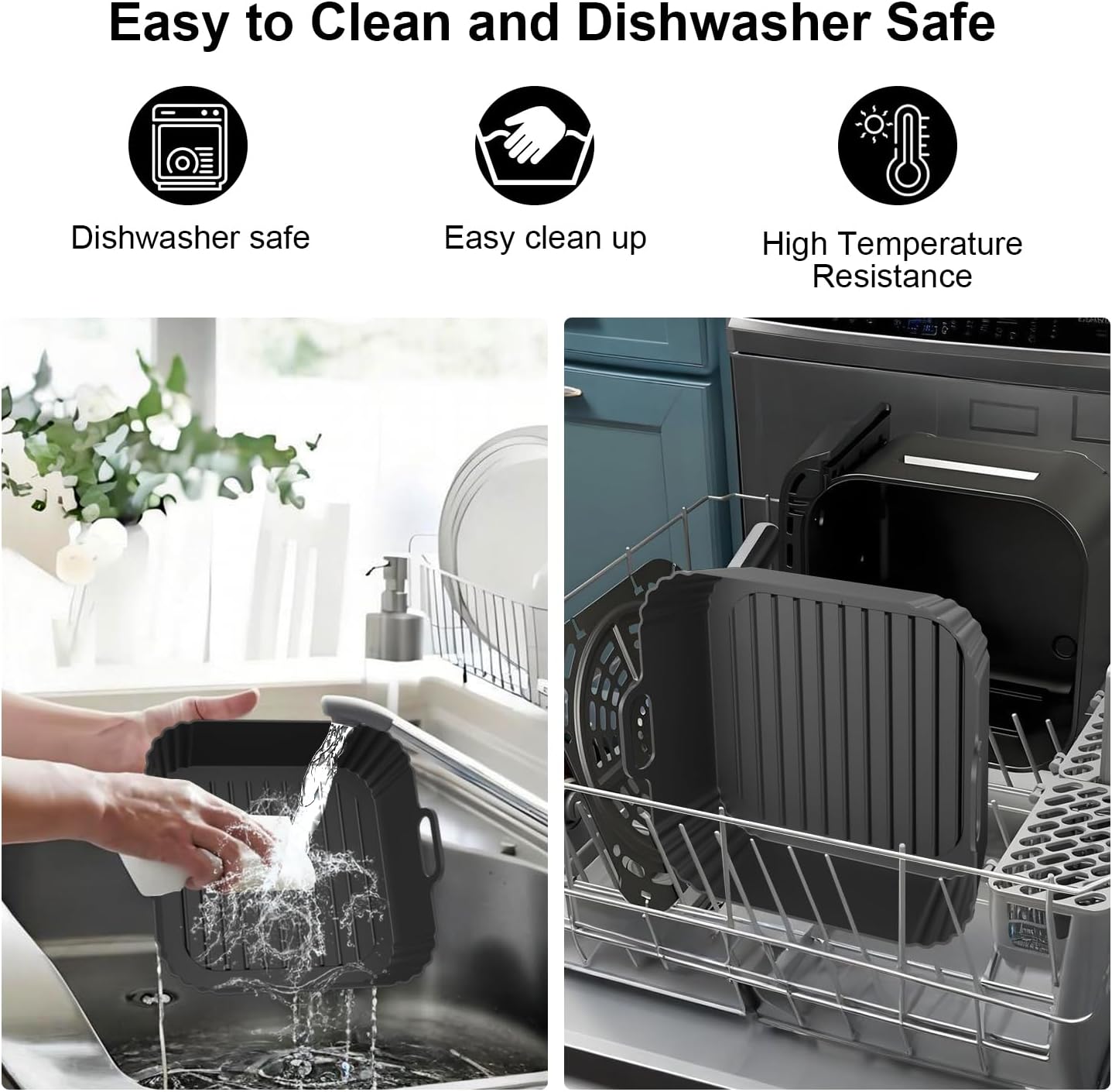 - Easy to Clean: Effectively protects the air fryer from food residue and grease buildup, and is fully dishwasher-safe, eliminating the hassle of hand washing. Say goodbye to sticking and burnt residue, making cleaning a breeze.