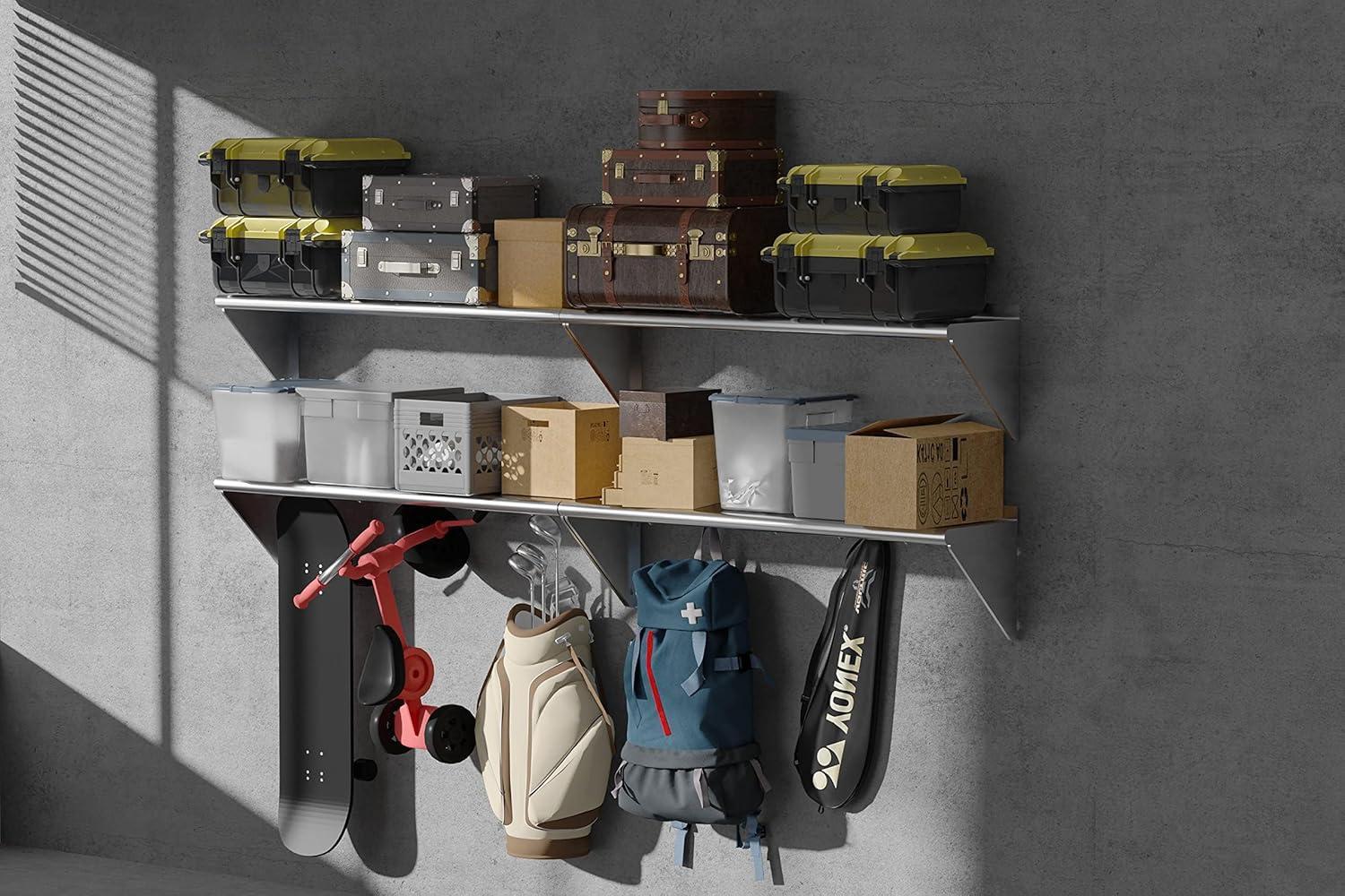 - 3 EXTRA SUPPORT BRACKETS: Our commercial shelves is Engineered with 3 extra support brackets, this wall-mounted stainless steel shelf delivers unshakable stability for heavy kitchen appliances like microwaves, rice cookers, or bulk pantry items