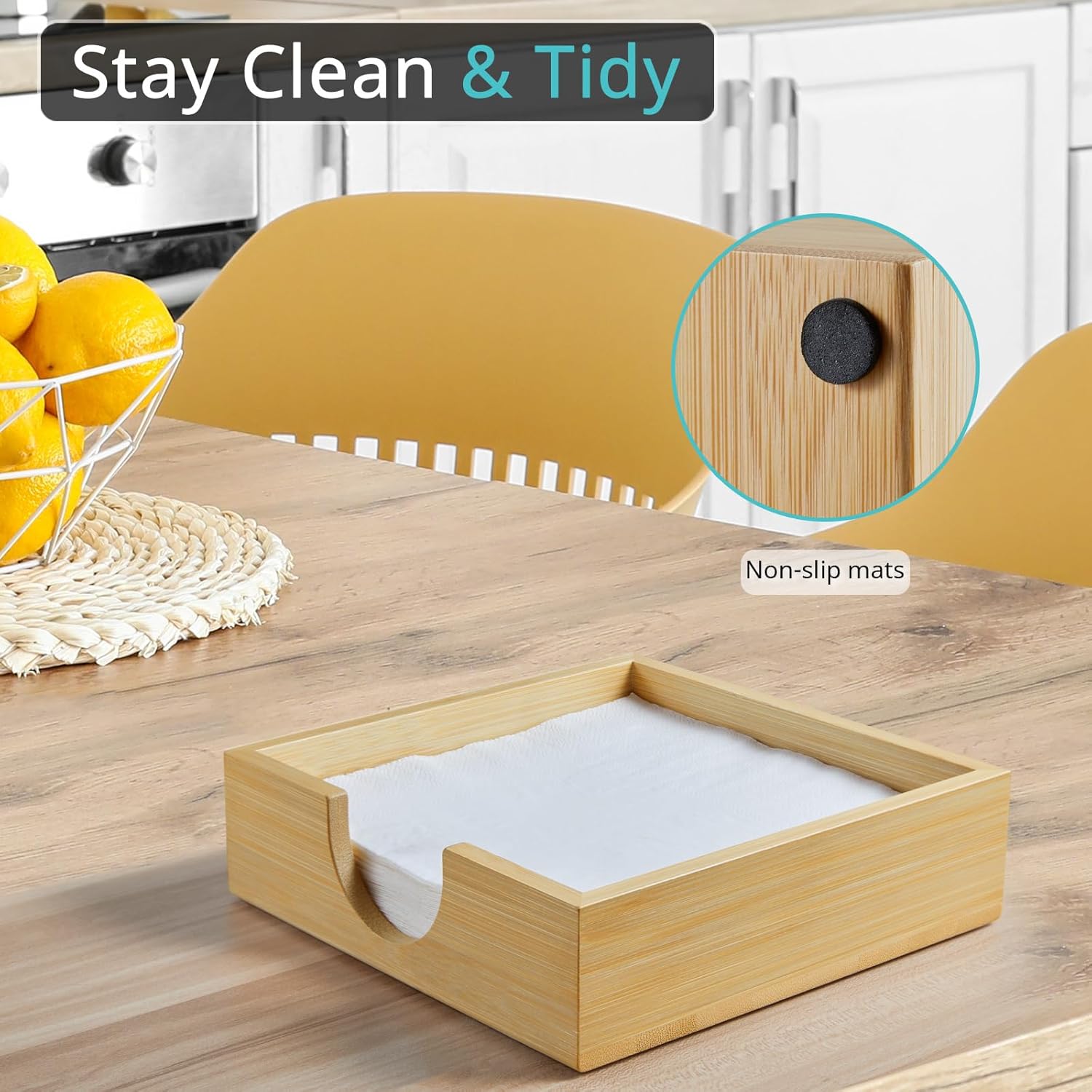 Bamboo Napkin Holder for Table, Napkins Holders For Paper Napkins, Flat Napkin Holder for Luncheon, Napkin Holders for Kitchen Dinner Table Decor, Napkin Dispenser for Indoor & Outdoor Use