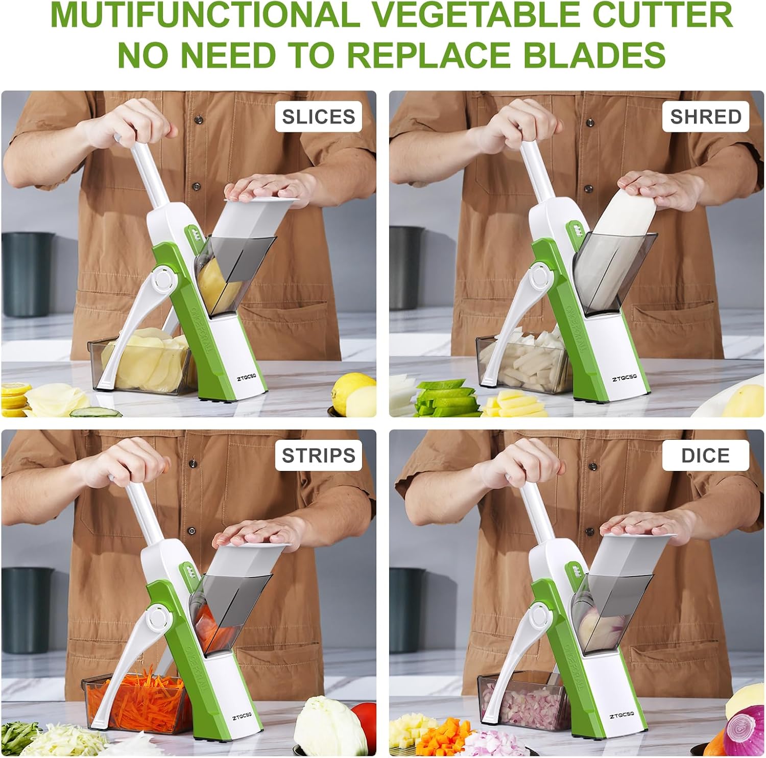 - 2. Professional Vegetable Chopper with Adjustable Thickness: The ZTQCSQ Mandoline Slicer eliminates the need for blade changes. With adjustable thickness settings from 0.1 to 8mm, it’s perfect for quickly slicing potatoes, carrots, cucumbers, onions, and more. The durable, easy-to-use blades are designed to last, making home cooking faster and more efficient.