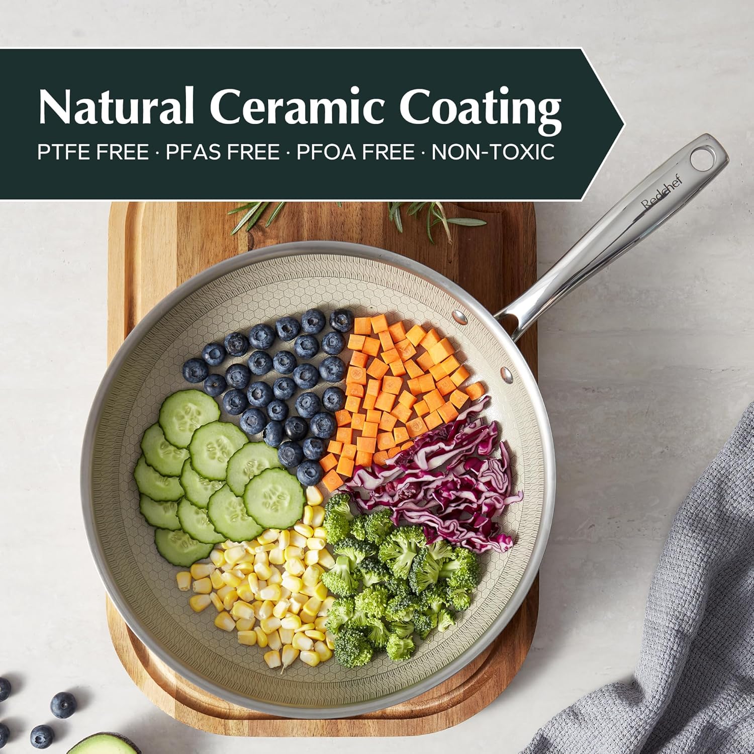 Redchef Hybrid Ceramic Nonstick 11-Inch Frying Pan with Stay-Cool Handle, Dishwasher & Oven Safe, Induction Compatible, Tri-Ply Stainless Steel & Aluminum, All Cooktops