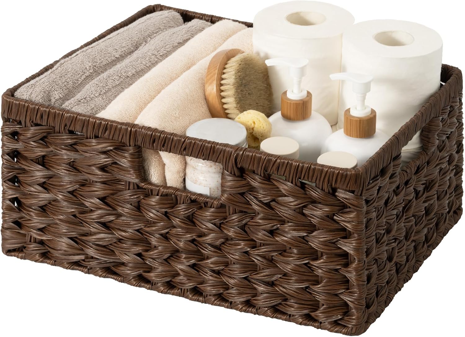 GRANNY SAYS Wicker Storage Baskets for Shelves, Waterproof Wicker Baskets for Organizing, Woven Basket for Shelves, Decorative Basket for Pantry, Brown