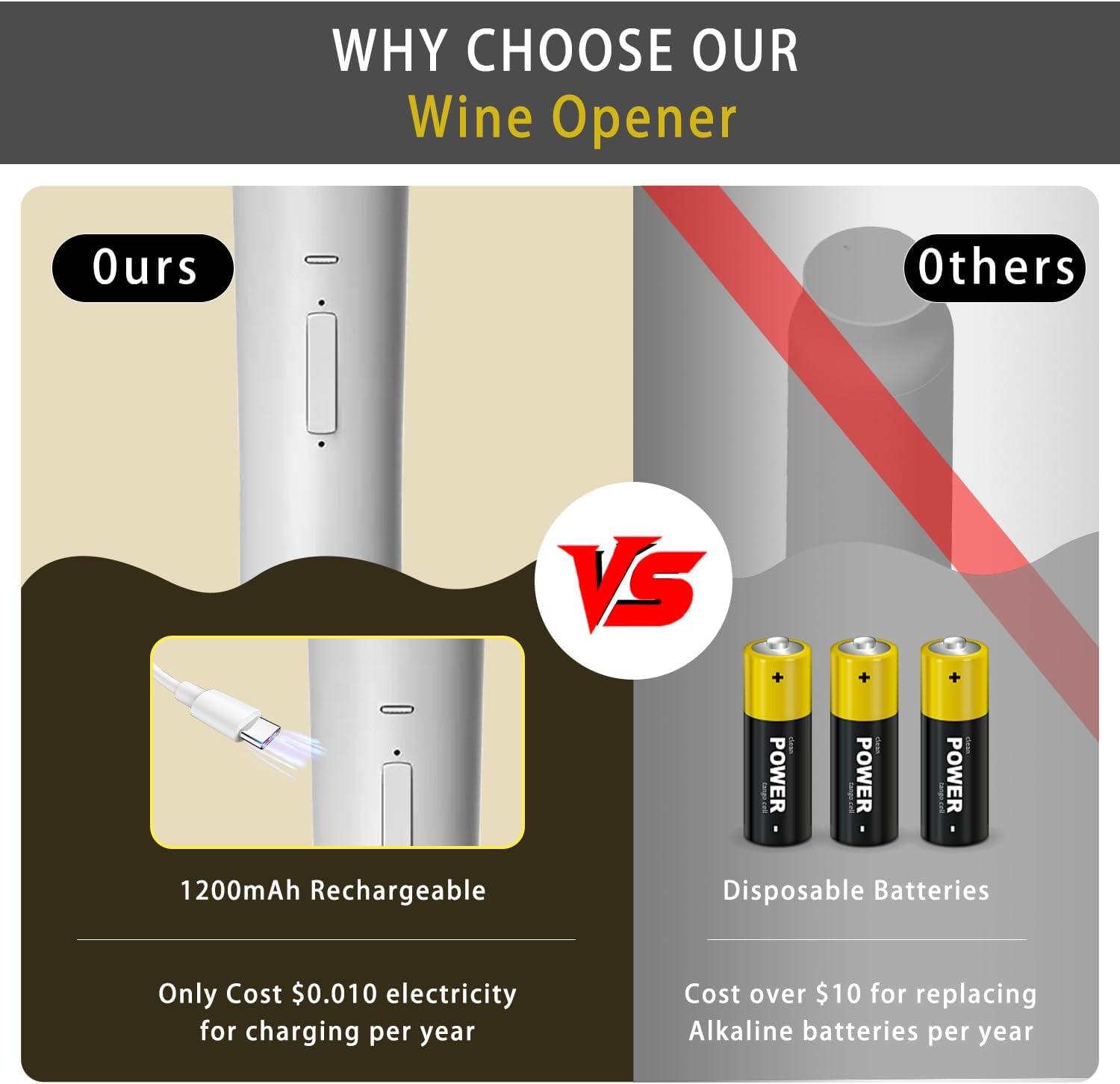 - Effortless One-Touch Operation Enjoy hassle-free wine opening with our automatic electric wine opener! Simply press the button, and the cordless wine opener effortlessly removes corks in seconds—no twisting or pulling. Perfect for smooth, professional-grade uncorking every time.
