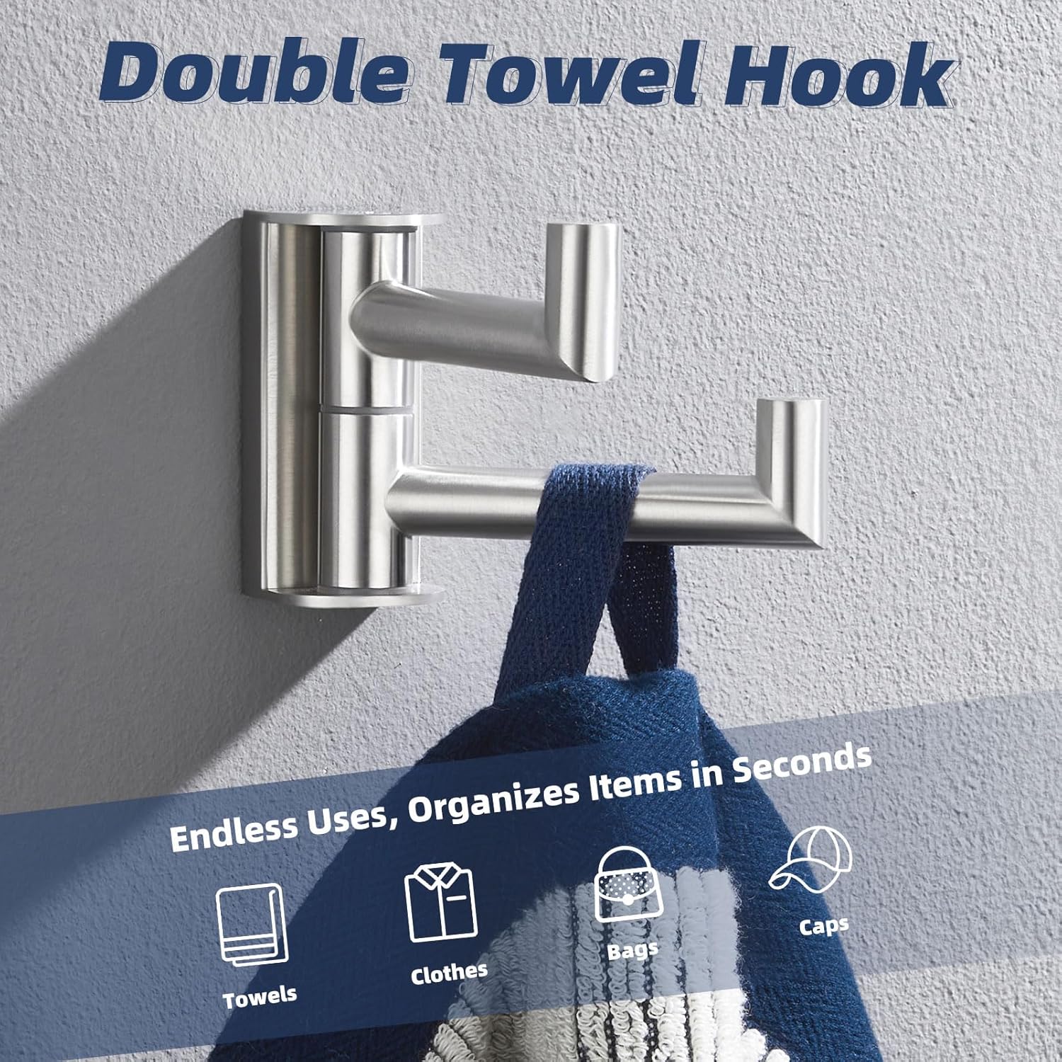 APLusee Brushed Nickel Double Swivel Towel Hook, 304 Stainless Steel Folding Clothes Hanger with Multi 2 Rotating Arms, Wall Mounted