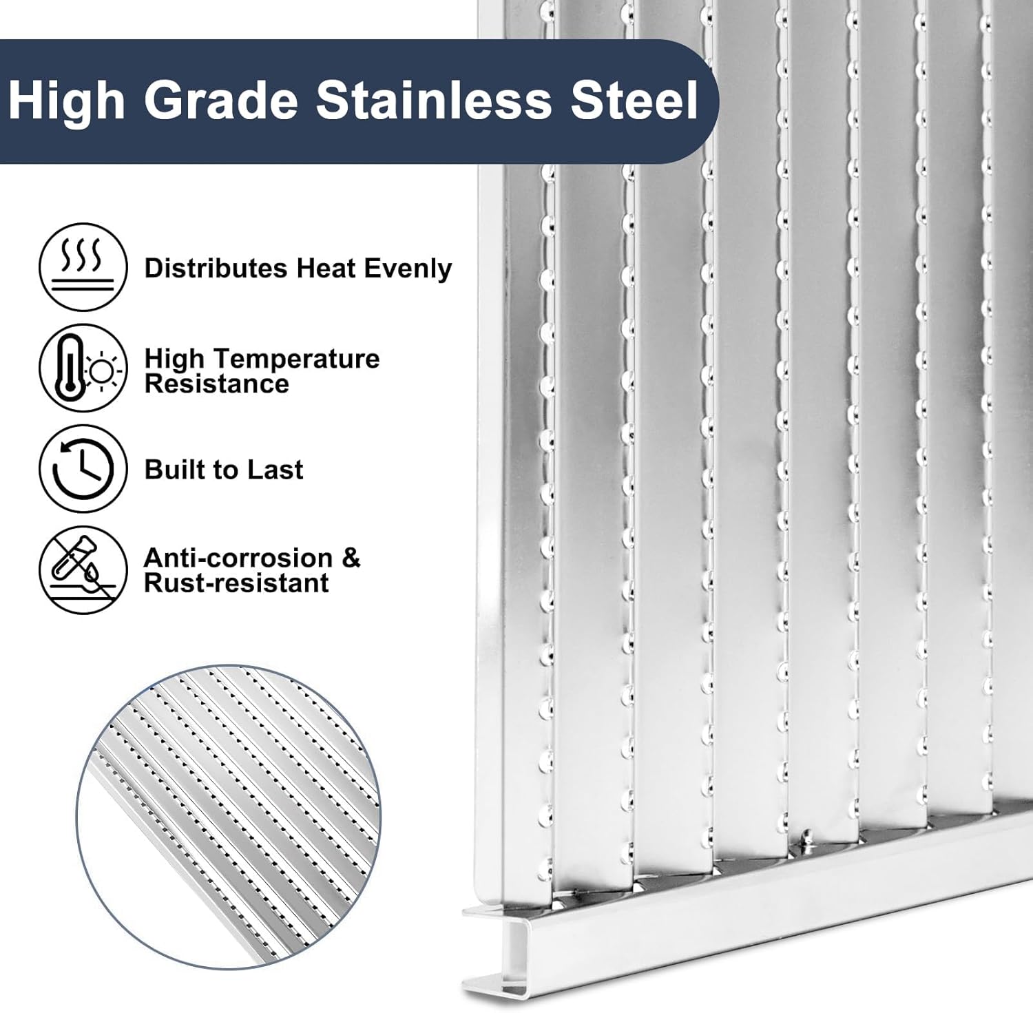 - 【 High-quality Stainless Steel 】 The G533-2200-W1 Grill Emitter is made of high-quality stainless steel with an integrated stamping and punching design. It has uniform heating, high temperature resistance, and is not prone to deformation or bending during grilling.