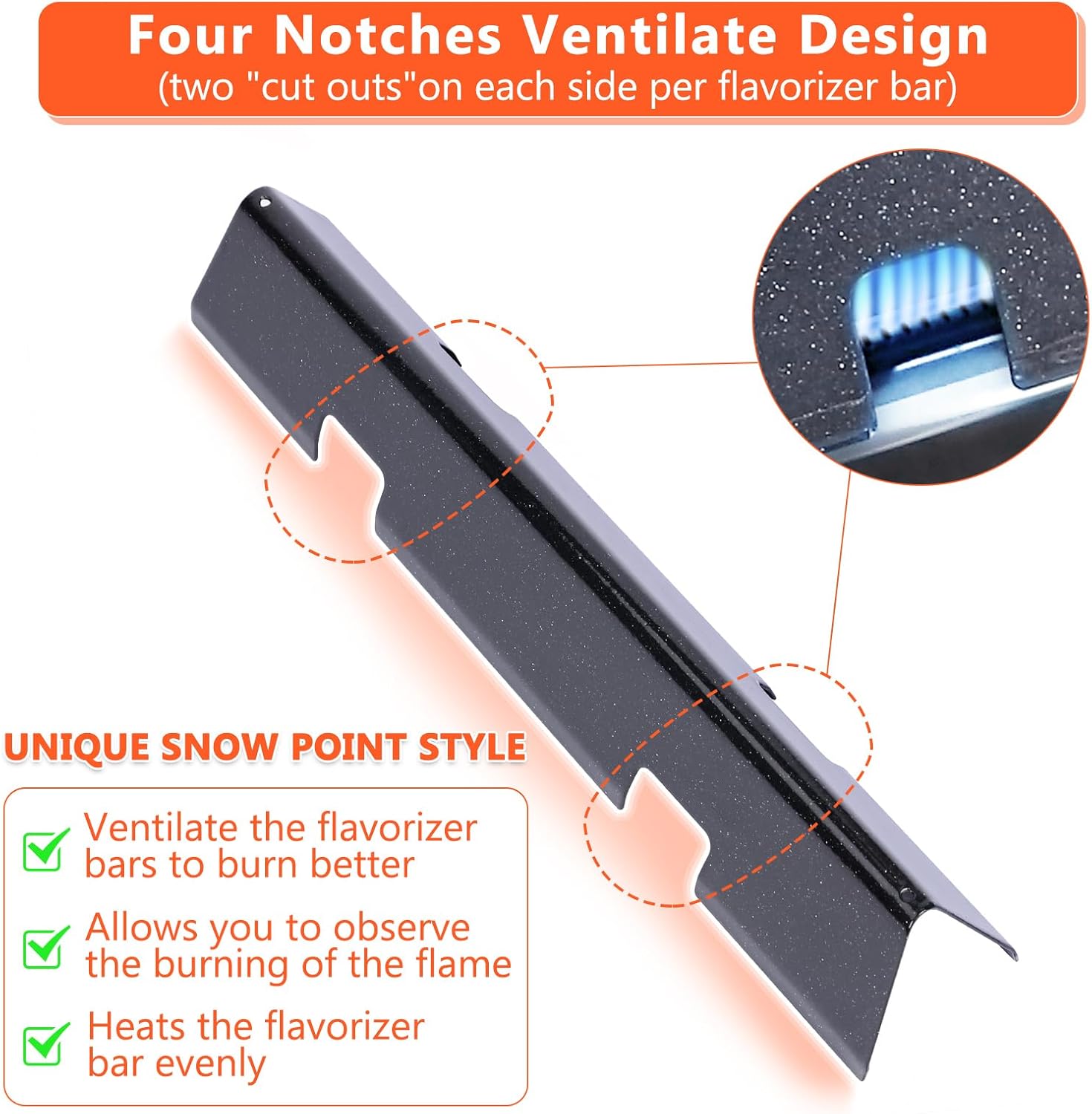 - đ„ăHEAT EVENLYăFor weber spirit grill parts prevent food directly exposure to flame, have a good protection for your burner and make your food more evenly heated, which can avoid local overheating. Porcelain Steel flavorizer bars create delicious barbecue flavor, achieve the perfect balance of temperature and flavour!