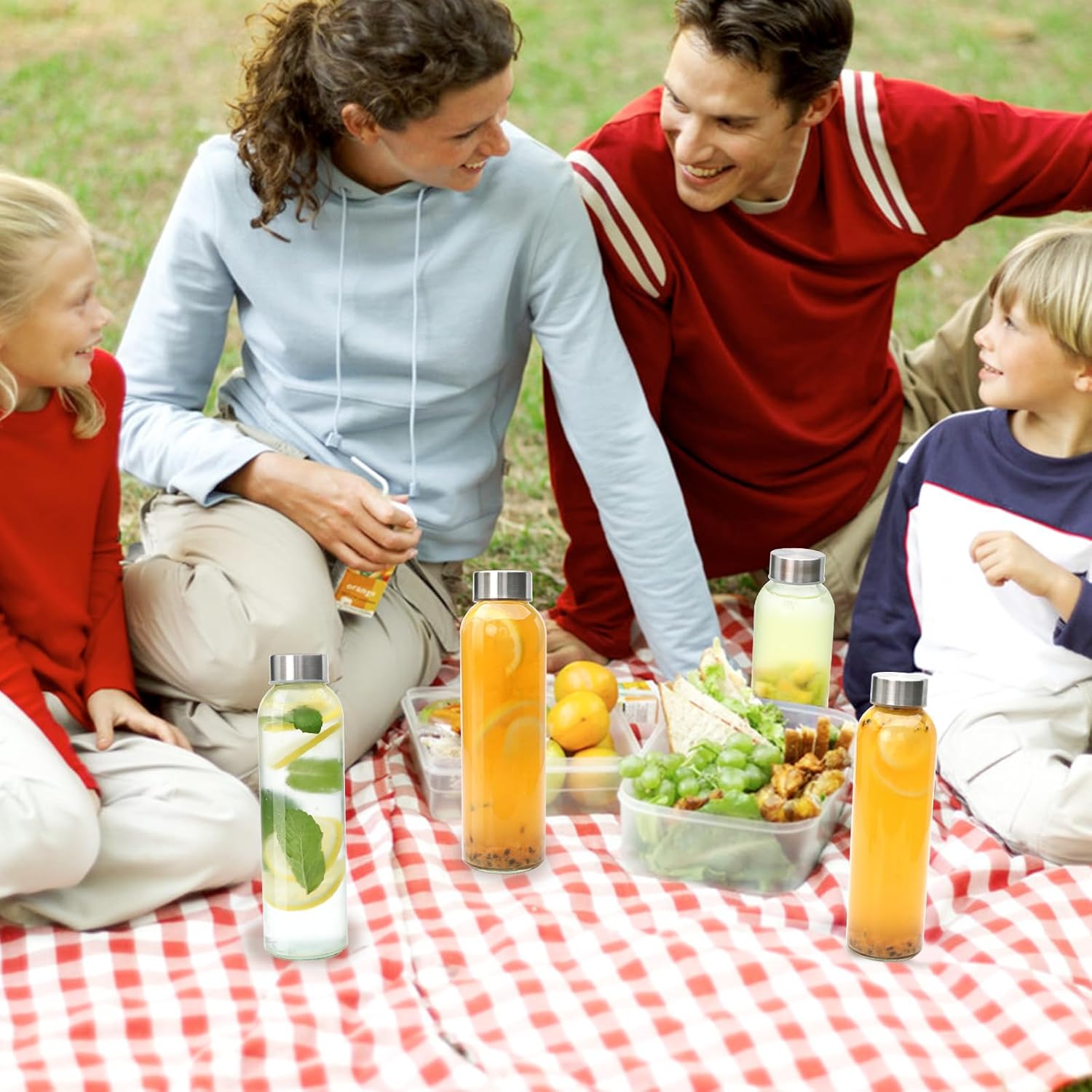 - STAY HYDRATED:The slim and portable design means you can take your glass drinking bottle with cap everywhere, perfectly for garden parties, homemade drinks, weddings, picnics, school, work, gym, fitness, yoga and beach trips. Easily store in the fridge, lunch bag or car cup holder.