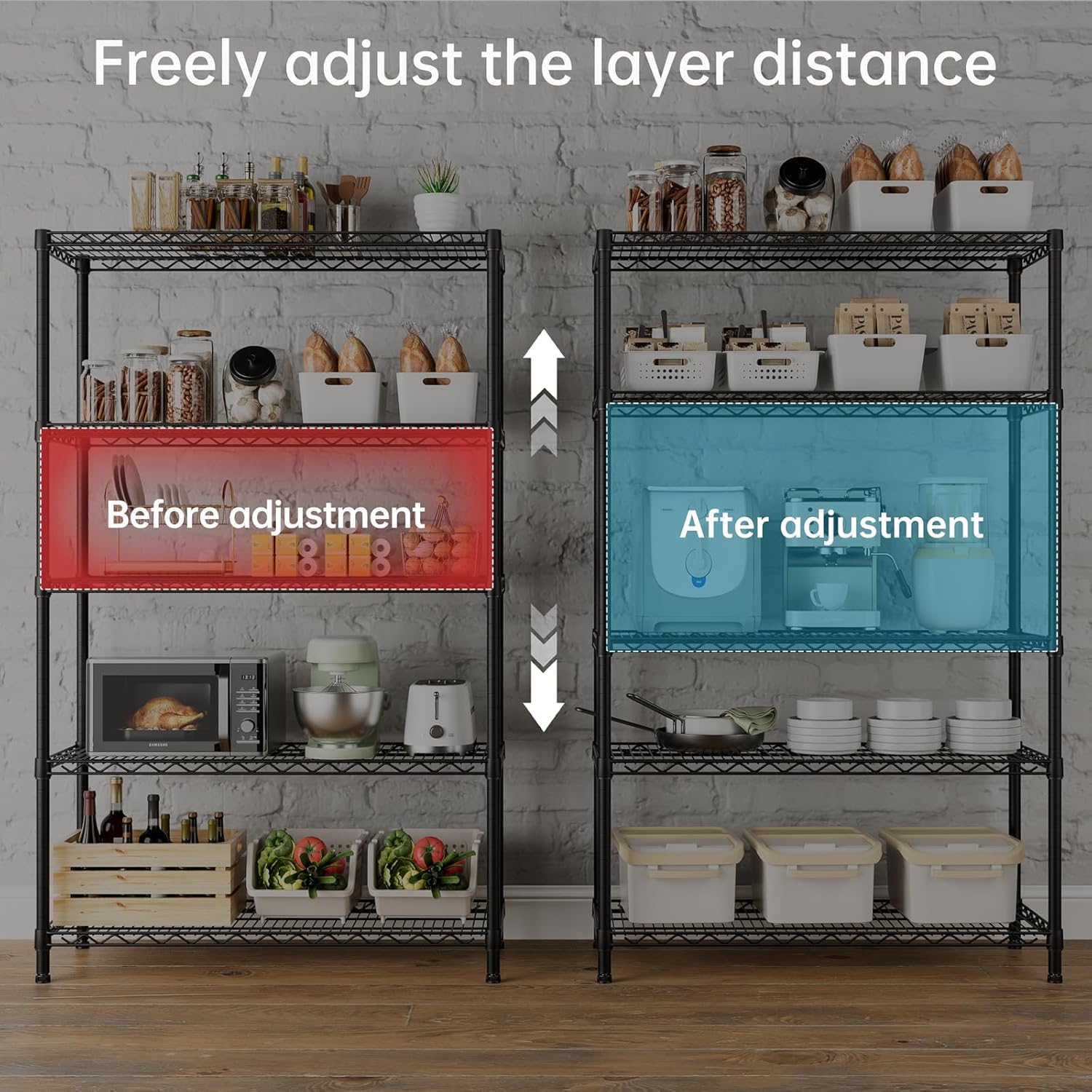 - Convenient Home Storage: Metal wire shelves with adjustable spacing make perfect for narrow spaces or room corners such as kitchens, bathrooms, laundry rooms, balconies, garages, entries, or offices.