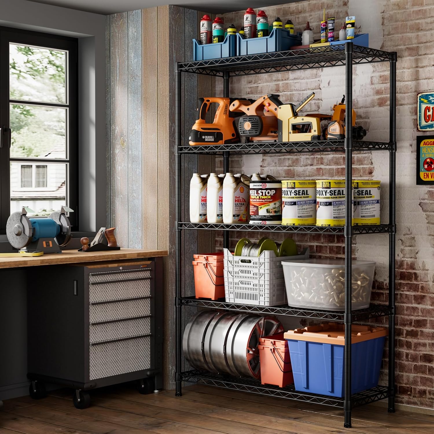 SINGAYE 5 Garage Heavy Duty Shelving Unit Kitchen Pantry Close Home Organizers and Storage Bathroom Shelf Laundry Room Organization Industrial Book Metal Wire Adjustable Shelves