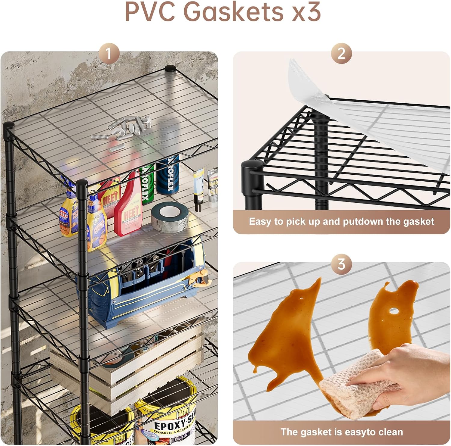 - Rustproof: This shelving has been specially coated to prevent rust or corrosion. You can rest assured to place it in your kitchen or bathroom shelves laundry room organization and storage