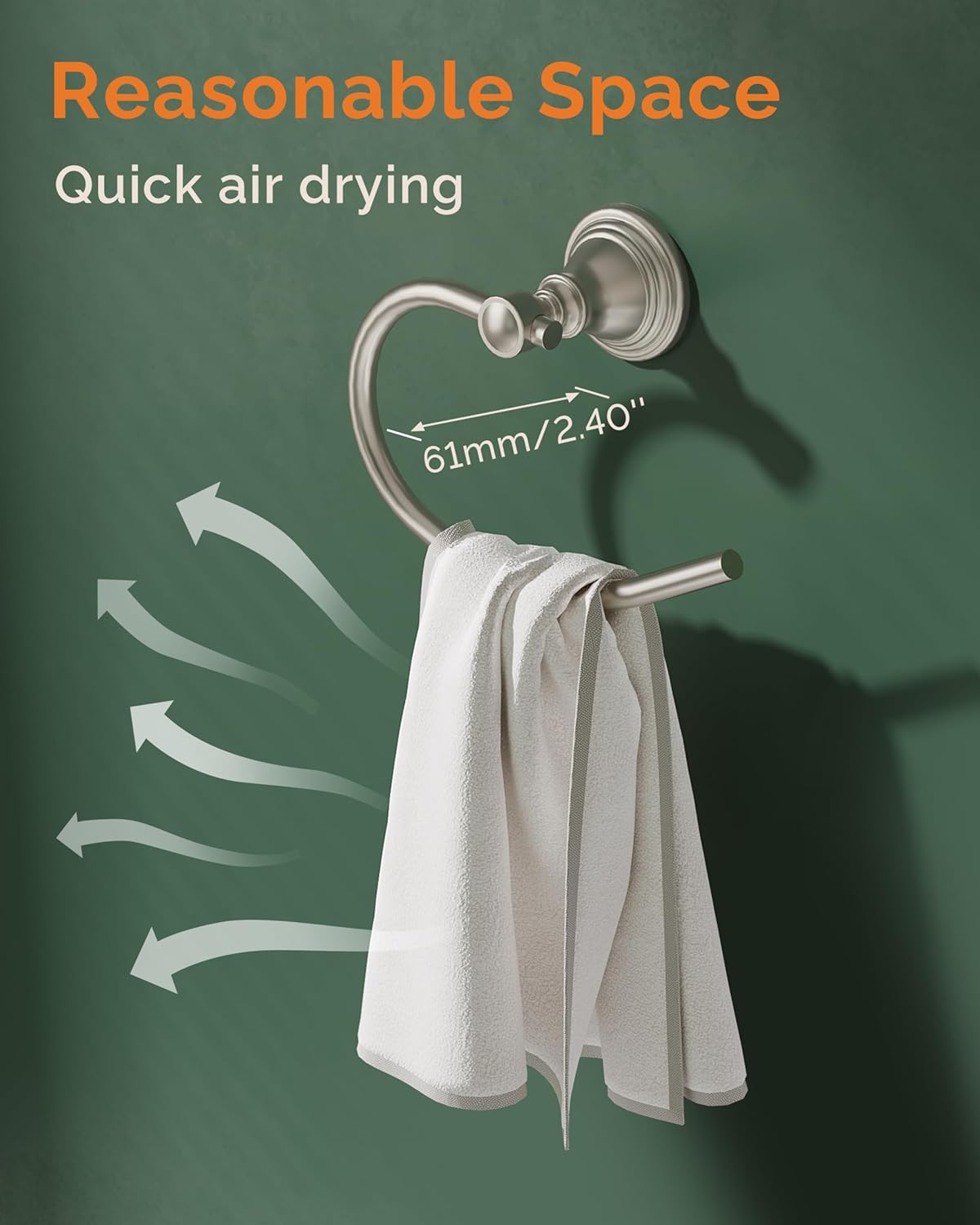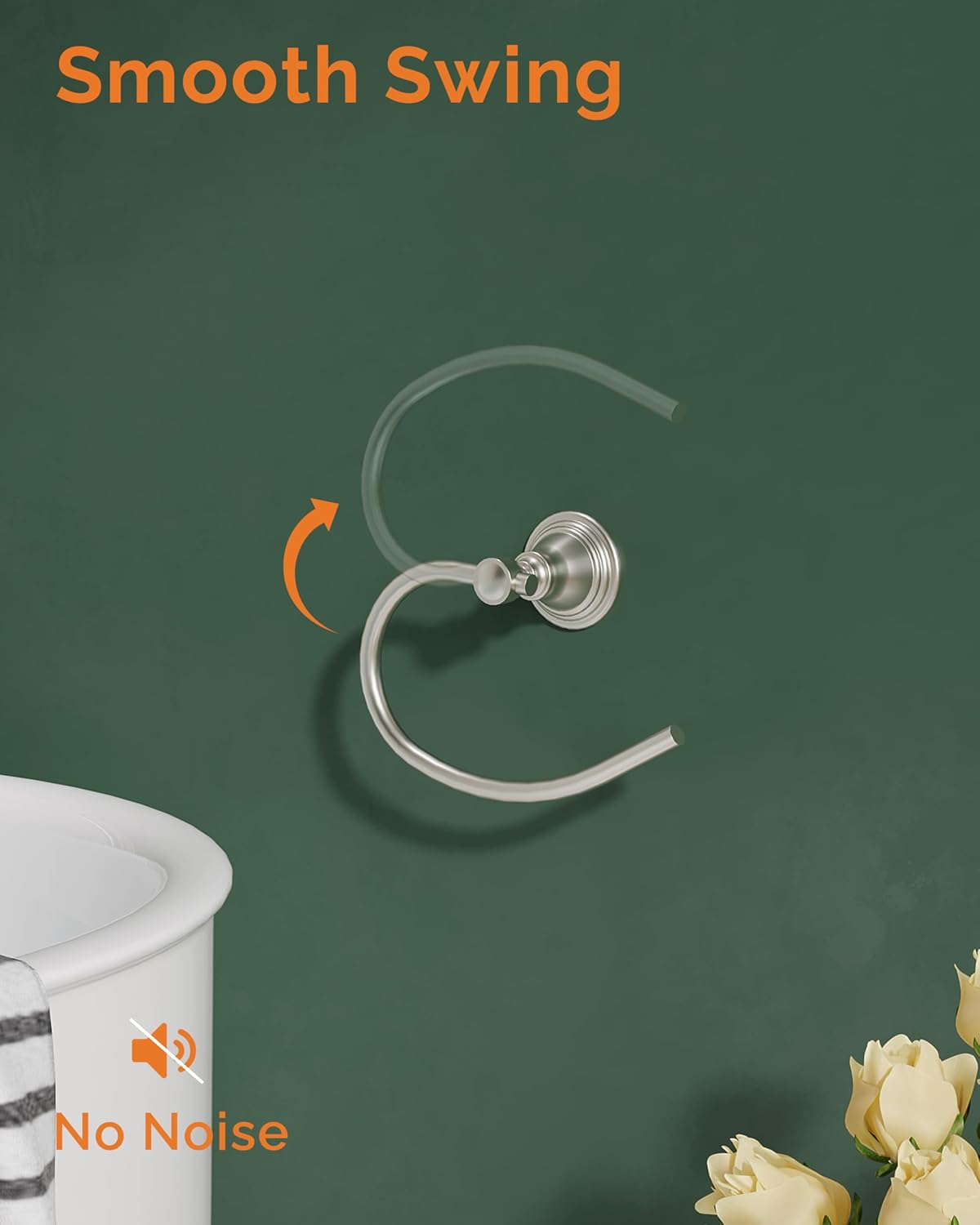 - [180° Flexible Rotationl] Our brushed nickel towel ring can rotate 180 ° without noise or rotation, making towel ring for bathroom easy to use