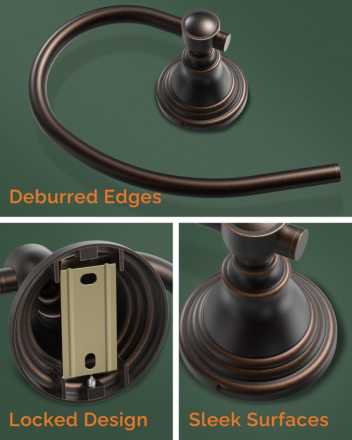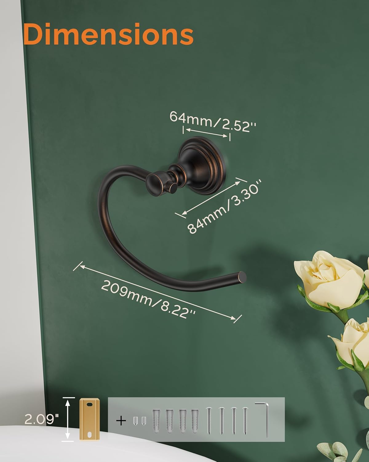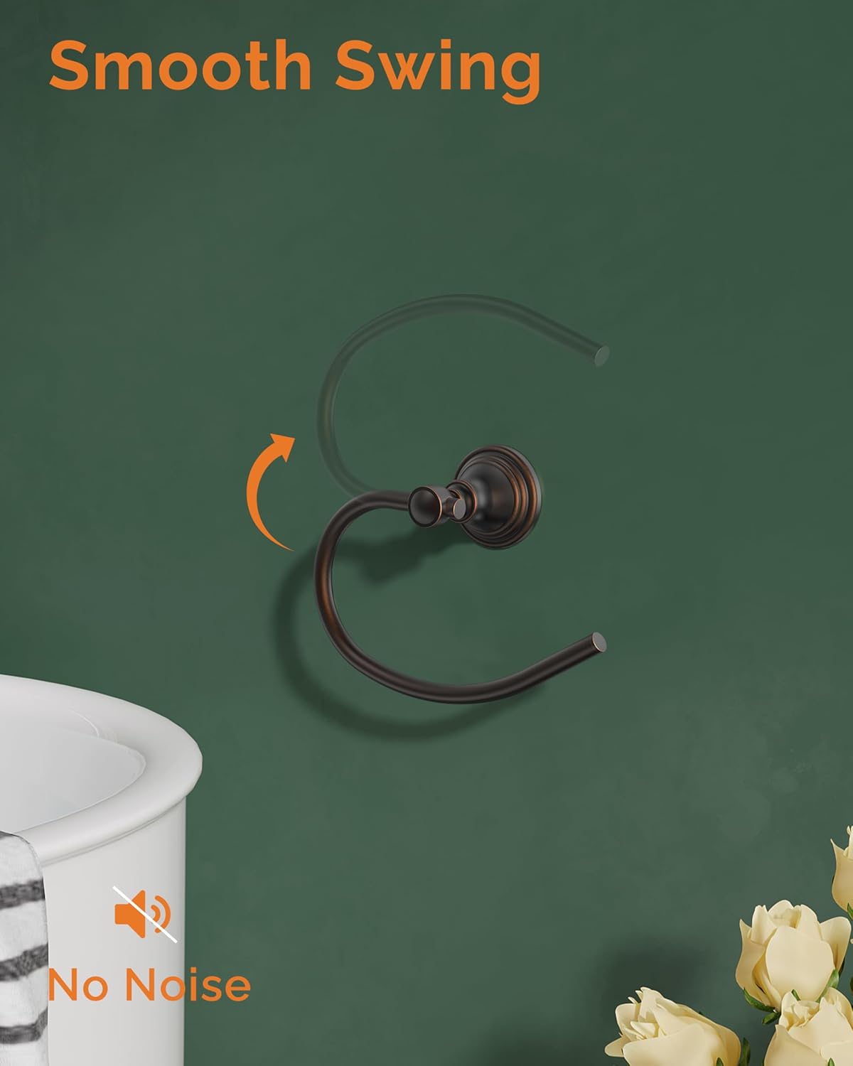 - [180° Flexible Rotationl] Our oil rubbed bronze towel ring can rotate 180 ° without noise or rotation, making towel ring for bathroom easy to use