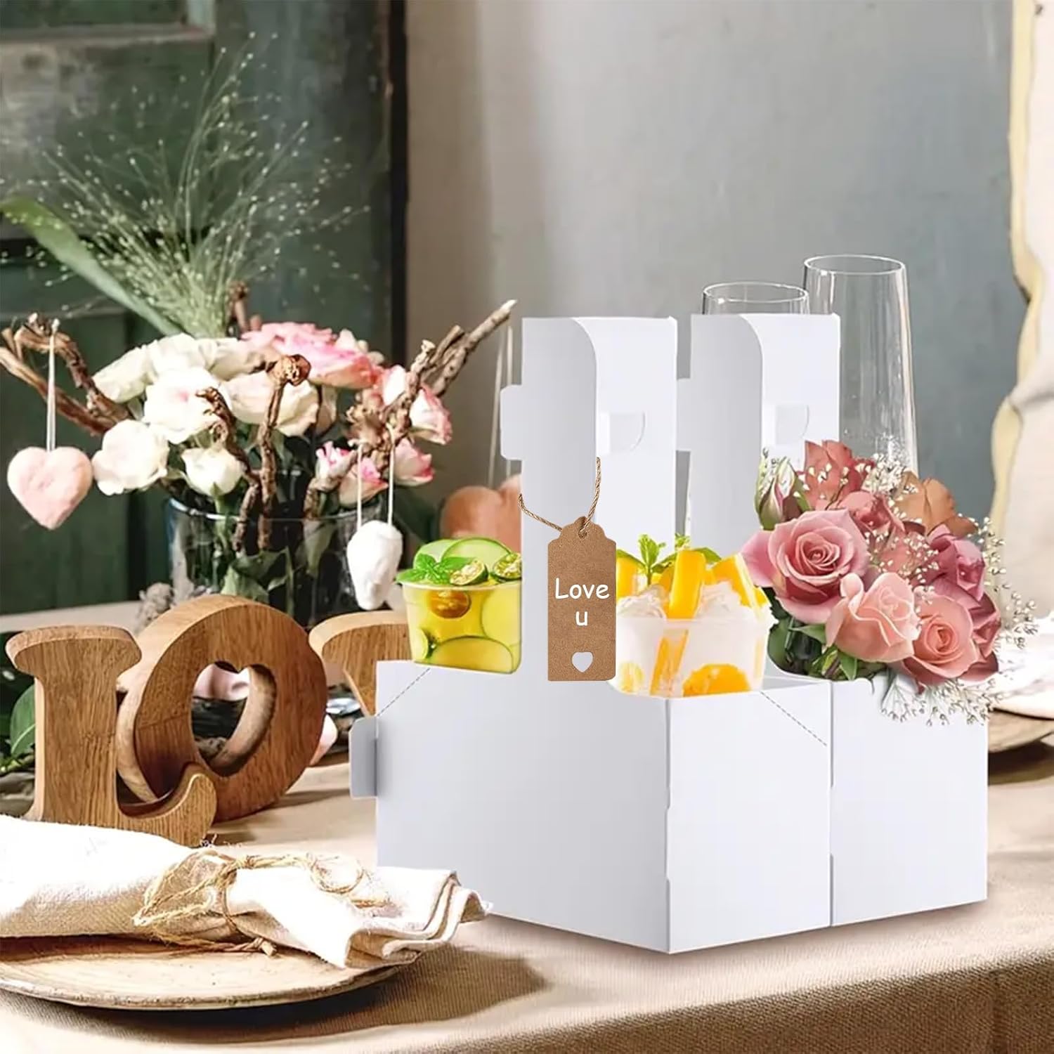 - Wide range of uses: Our cup holders are not only limited to carrying drinks, but also holding hot or iced coffee, smoothies, milkshakes, ice cream, etc. They can also be used as bouquet gift bags, candies, cakes, small gifts, and painting material organizers, which are very suitable for coffee shops, bakeries, dessert shops, and restaurants