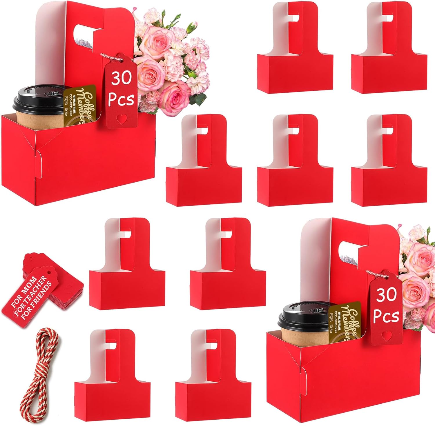 - Sufficient quantity: Our coffee holder package contains a total of 30 red cardboard two-cup drink holders, and also comes with love cards and rope. You can write their message or wishes on the card and place them on the paper cup holder with the rope. It is suitable for Teacher Appreciation Week and Mother's Day, Valentine's Day and other festivals