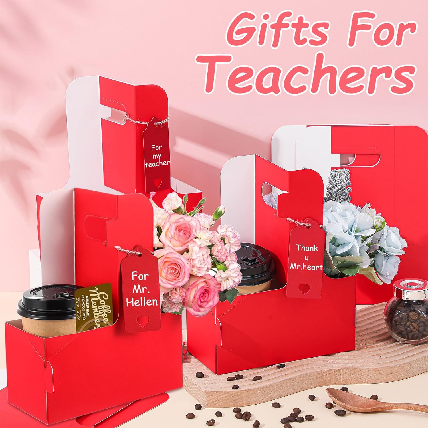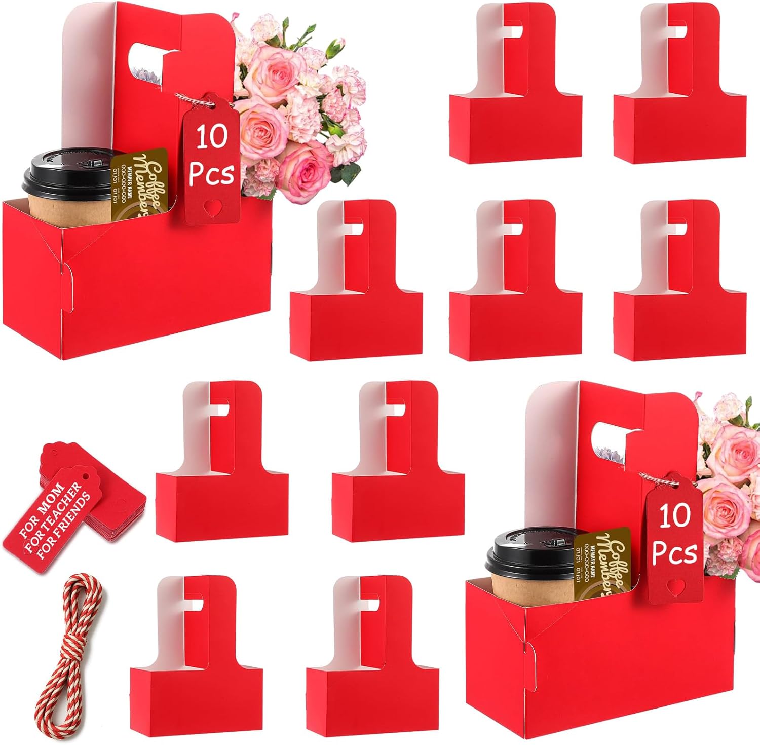 - Sufficient quantity: Our coffee holder package contains a total of 10 red cardboard two-cup drink holders, and also comes with love cards and rope. You can write their message or wishes on the card and place them on the paper cup holder with the rope. It is suitable for Teacher Appreciation Week and Mother's Day, Valentine's Day and other festivals