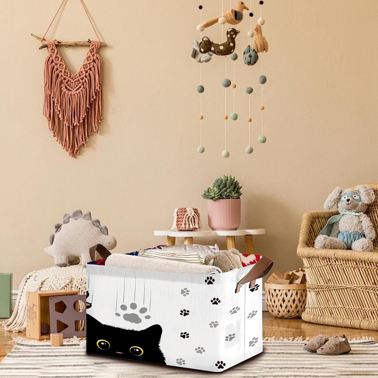 - Conveniently Within Reach: Mogifedc Black Cat Basket Comes With Leather Handles For Easy Transport. Each Handle Is Reinforced And Secured To The Basket With Extra-Strong Stitching,So The Basket Can Withstand Heavy Loads. Each Of These Soft Handles Ensures a Comfortable Grip,Making Housework a Breeze.