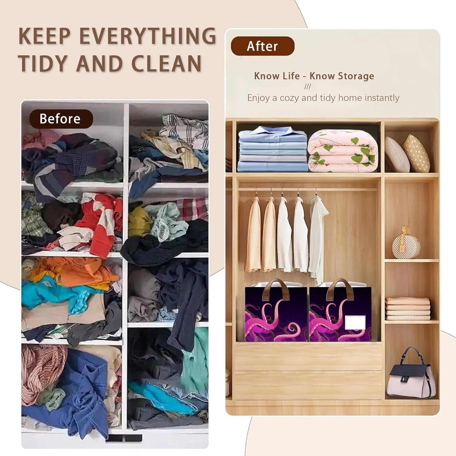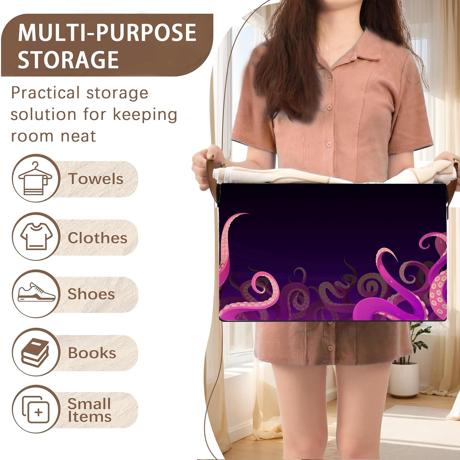 - Conveniently Within Reach: Mogifedc Octopus Tentacle Basket Comes With Leather Handles For Easy Transport. Each Handle Is Reinforced And Secured To The Basket With Extra-Strong Stitching,So The Basket Can Withstand Heavy Loads. Each Of These Soft Handles Ensures a Comfortable Grip,Making Housework a Breeze.