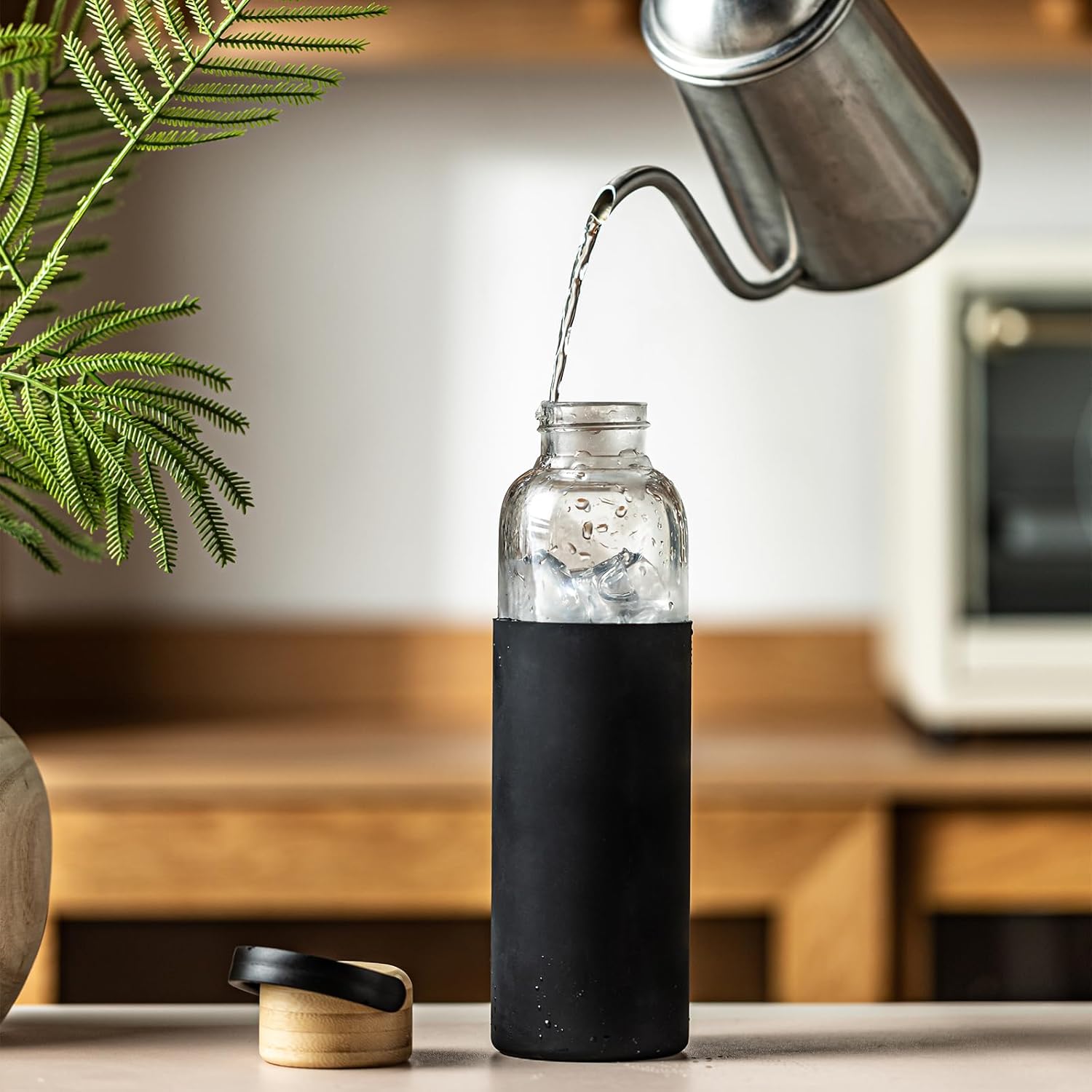 - Premium Borosilicate Glass Construction:Crafted from durable borosilicate glass, this water bottle is BPA-free, lead-free, and resistant to thermal shock, ensuring safe drinking without plastic taste. The high-quality glossy finish adds elegance while being dishwasher safe for easy cleaning
