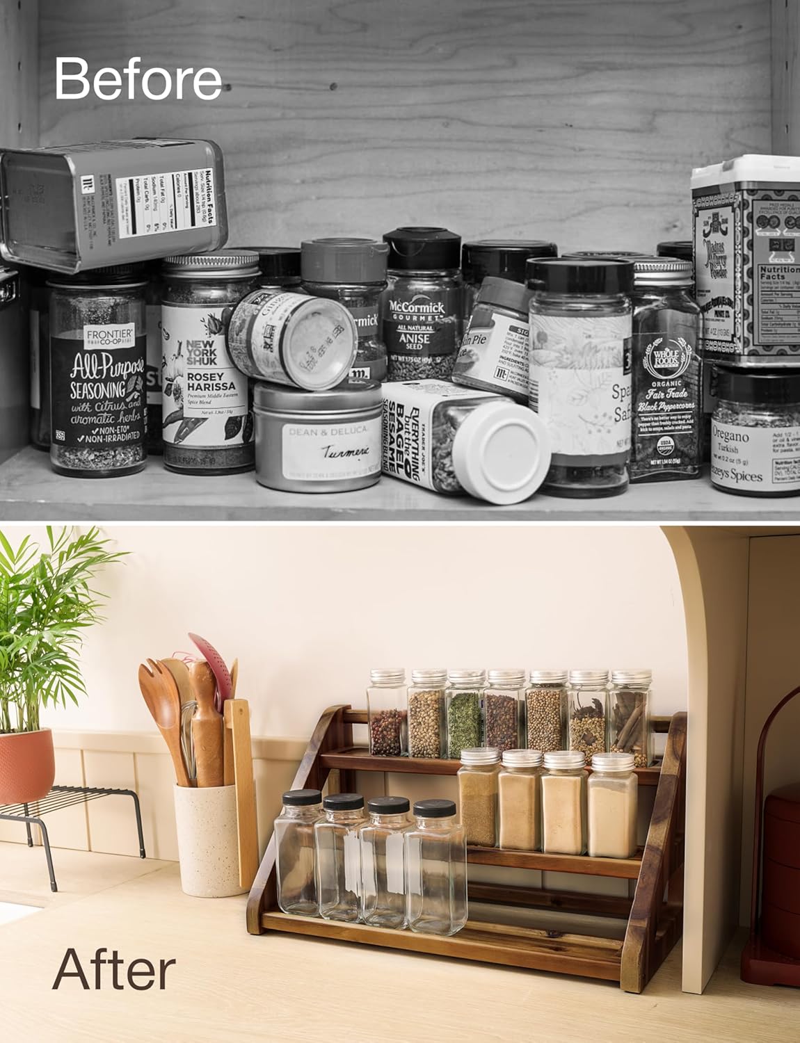 - Premium Acacia Wood Construction: Crafted from durable acacia wood with a rich walnut finish, this wood spice rack combines timeless elegance and strength, perfect for spice organization for cabinet or countertop. Elevate your kitchen with a warm, natural touch.