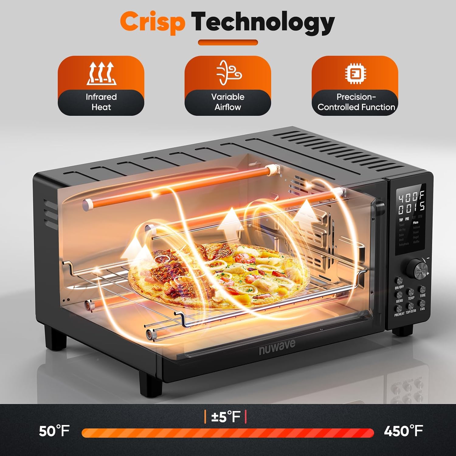 Nuwave Bravo Pro Convection Air Fryer Toaster Oven Combo, 2025 New and Improved, 10-in-1, 50°-450°F Temp Controls, Quick & Even Crisp Technology, 21Qt Capacity, Black, PFAS Free