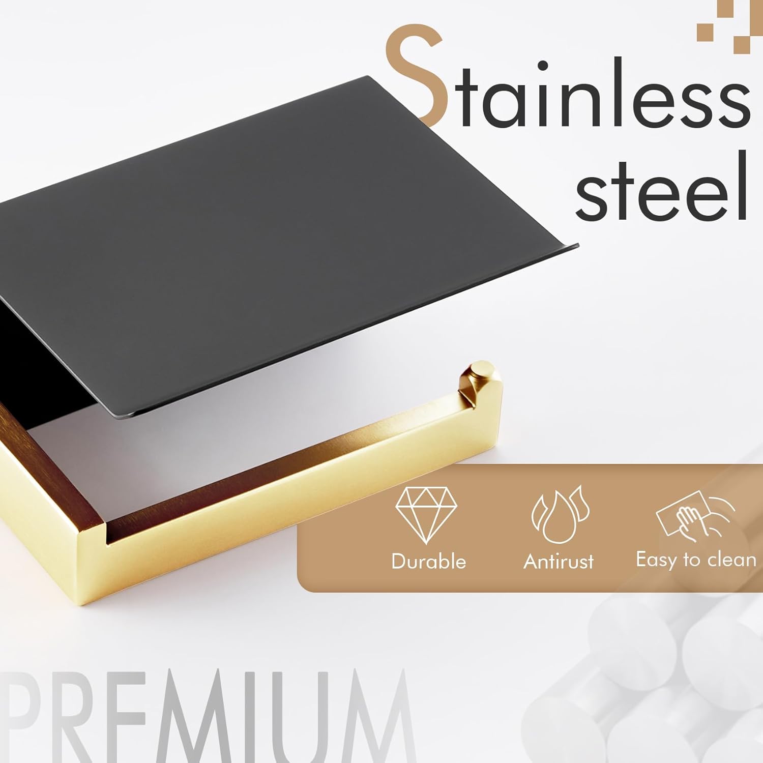 KOKOSIRI Toilet Paper Holders with Shelf Bathroom Toilet Paper Roll Holder Wall Mounted T-304 Stainless Steel, Matte Black and Gold B2010GDK