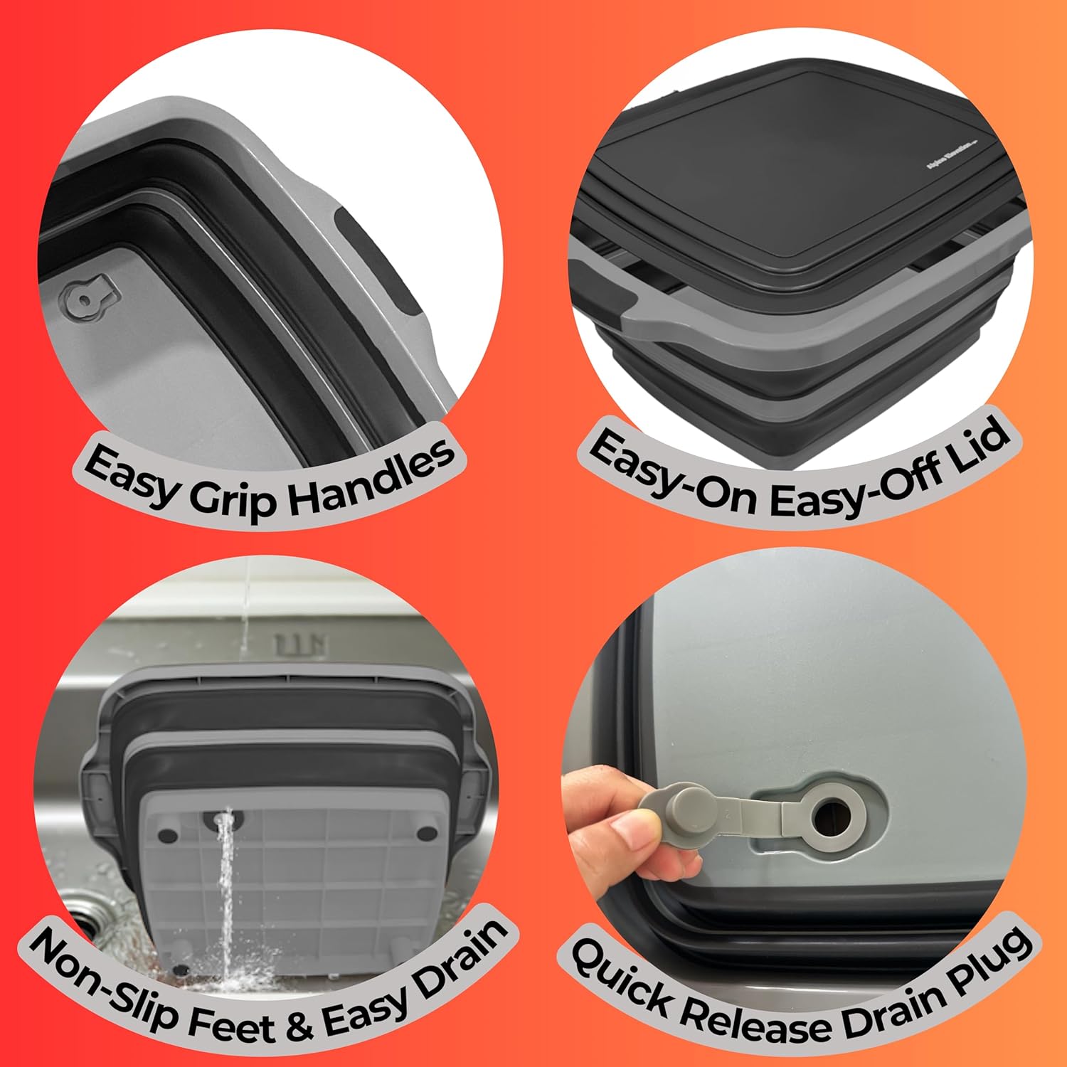 - Quick-Drain Plug – Built-in drainage hole lets you rinse, soak, or defrost with no mess. Converts the tub into a portable sink or strainer.