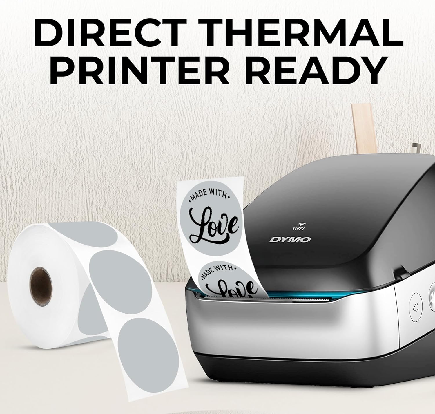 Perco Grey 2-Inch Perforated Circle Dot Thermal Sticker Labels — 735 Stickers/Roll, Direct Thermal Printer Compatible—with Permanent Adhesive for Organizing, Color Coding, Bin Labeling—Made in USA