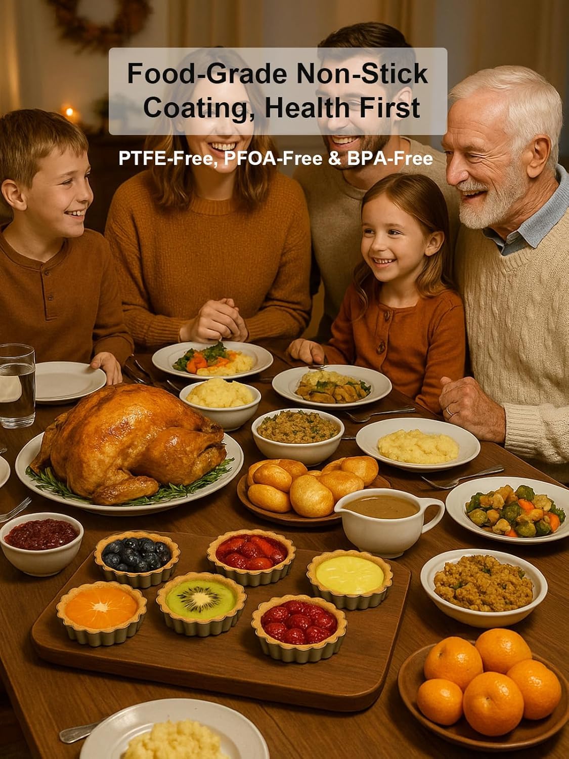 - 【Premium Non-Stick Surface--Healthy First】 Our tart pans feature a top-tier Xylan series coating by Whittford, an American coating brand, coupled with the innovative Plantinum-3X double-sided three-layer spraying process. This ensures a safe and easy-to-demould baking experience. The coating is completely free from PTFE, PFOA, and BPA, making it a healthy choice for all your baking needs.