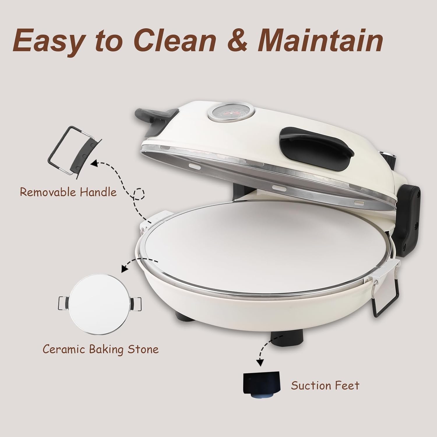 12" Electric Pizza Oven - Countertop Pizza Maker with Ceramic Stone, Heats up to 800°F, Portable Indoor Pizza Oven for Homemade Pizzas, White