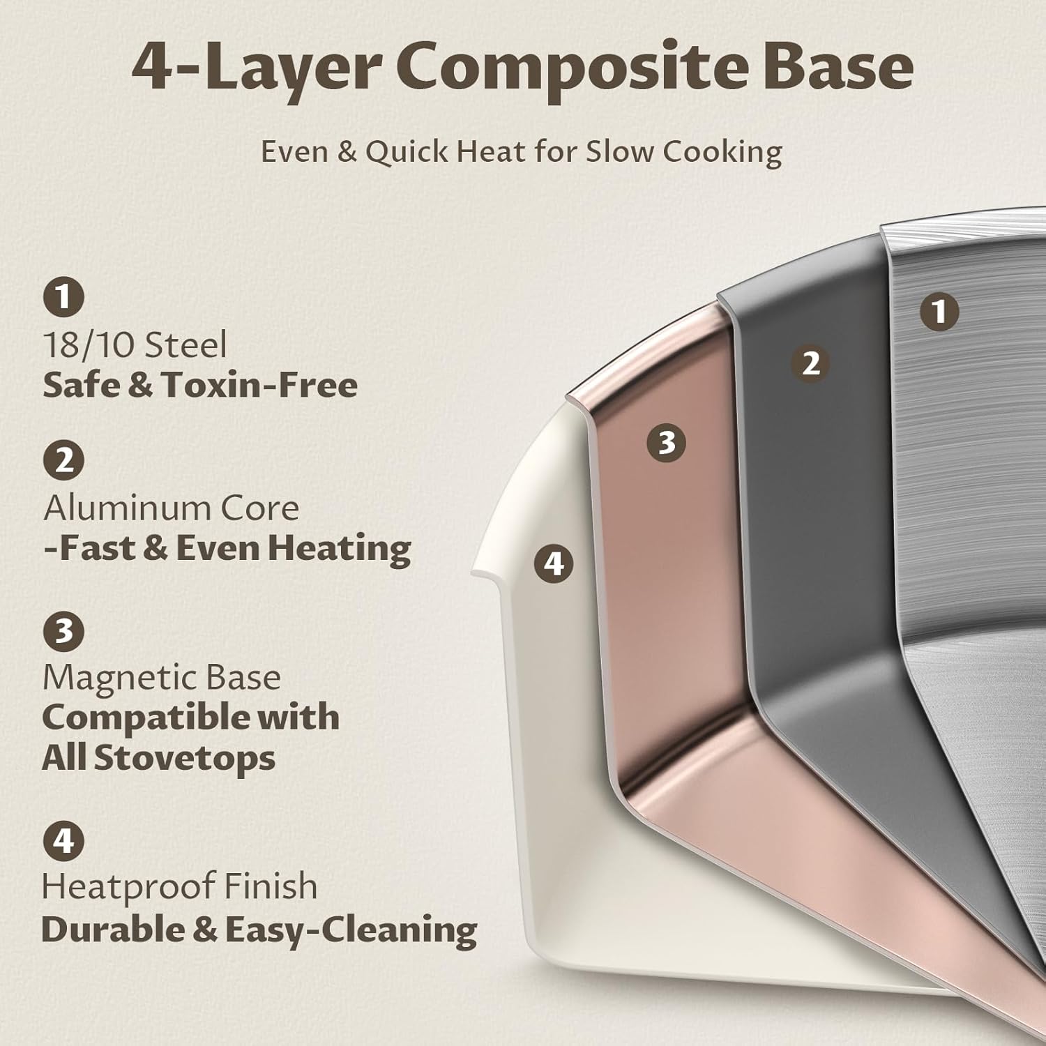 - ๐๐ซ๐ข-๐๐ฅ๐ฒ ๐๐ฅ๐๐ ๐๐ญ๐๐๐ฅ ๐๐จ๐ซ ๐๐ฏ๐๐ง ๐๐๐๐ญโ: This stainless steel stock pot features 3-layer construction for fast, even heat distributionโideal for slow-cooking soups, stews, or boiling pasta