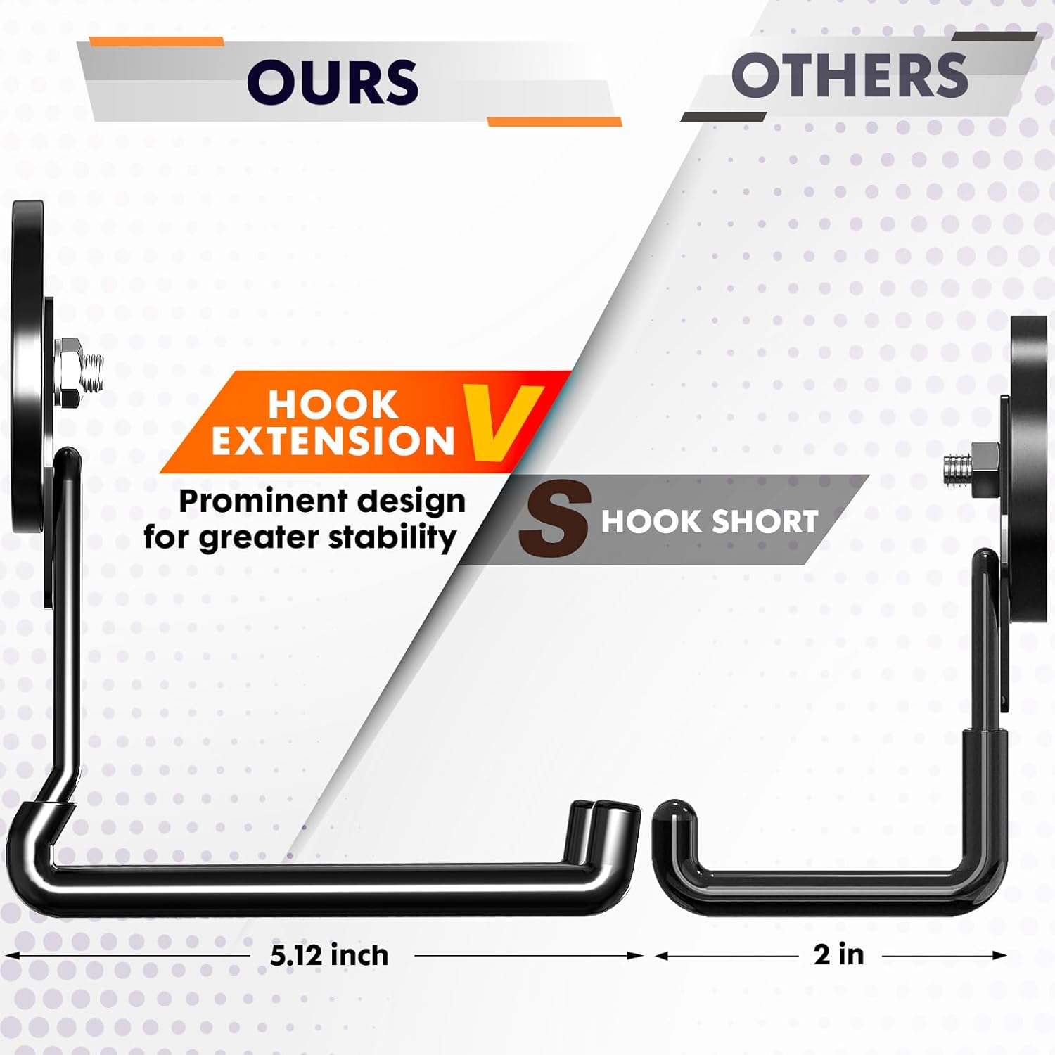 - 【Protruding Hook Design for Enhanced Stability】Designed with a raised, back-angled hook, this structure keeps items from sliding off.The protruding curve not only enhances balance but also distributes the weight more evenly, reducing strain on the magnetic base and ensuring long-term stability under load.