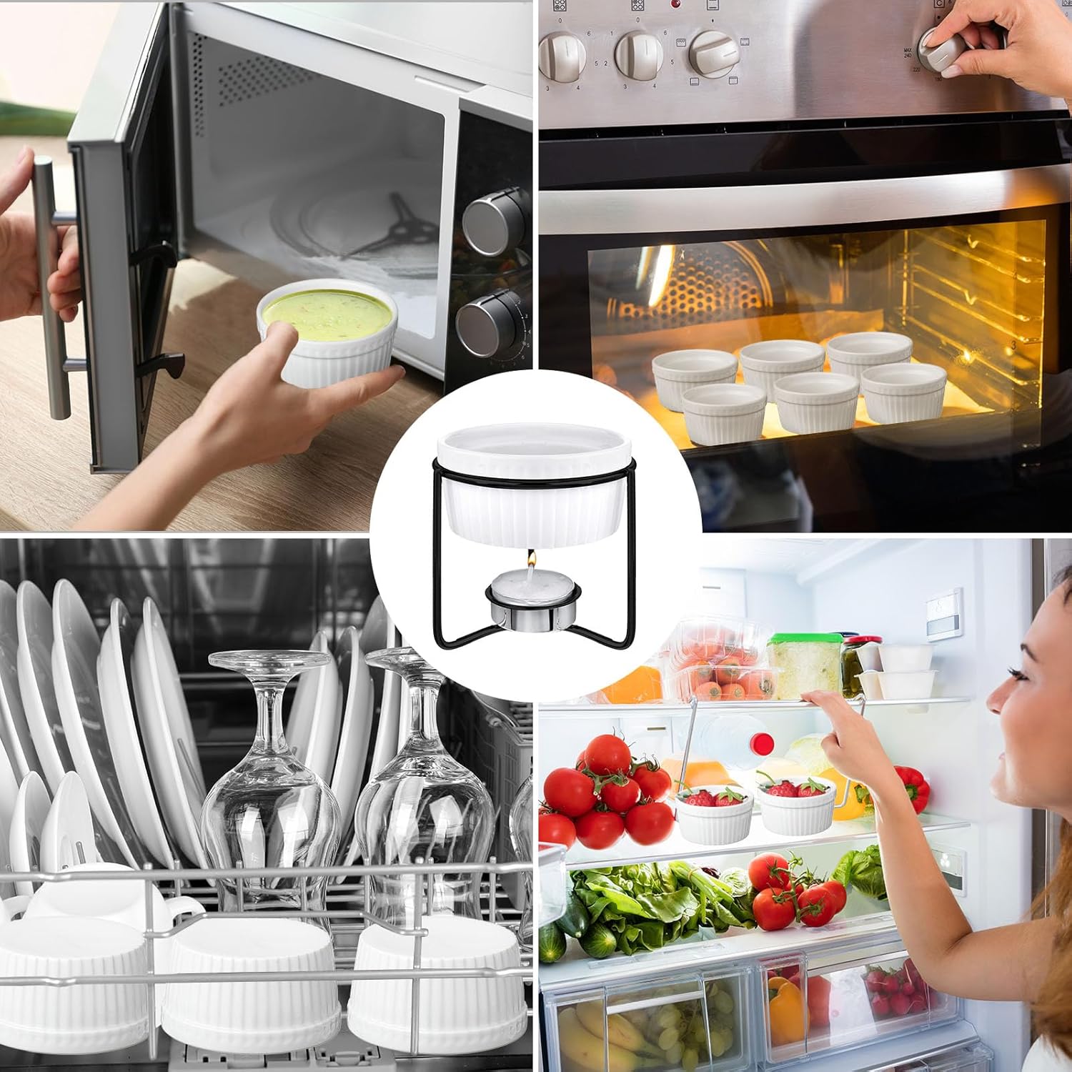 Treela 40 Pieces Ceramic Butter Warmers Set Included Butter Warmers Melter 32 Tealight Candles for Chocolate Cheese Fondue Crab Lobster Microwave Oven(White and Black)