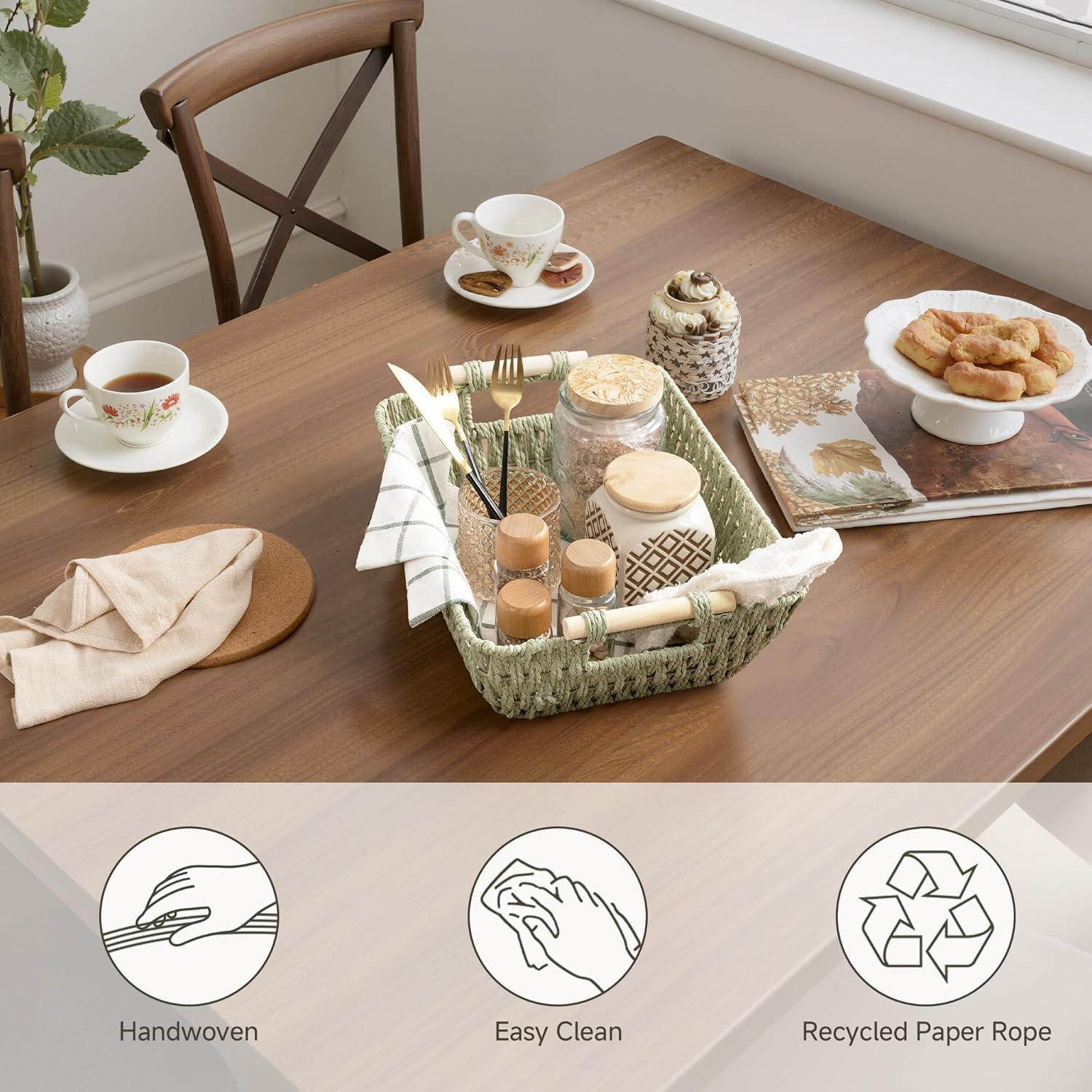 - Recycled Material: Made from durable, recyclable paper rope, designed for long-lasting use and easy recycling, combining storage functionality with a commitment to a low-carbon lifestyle.