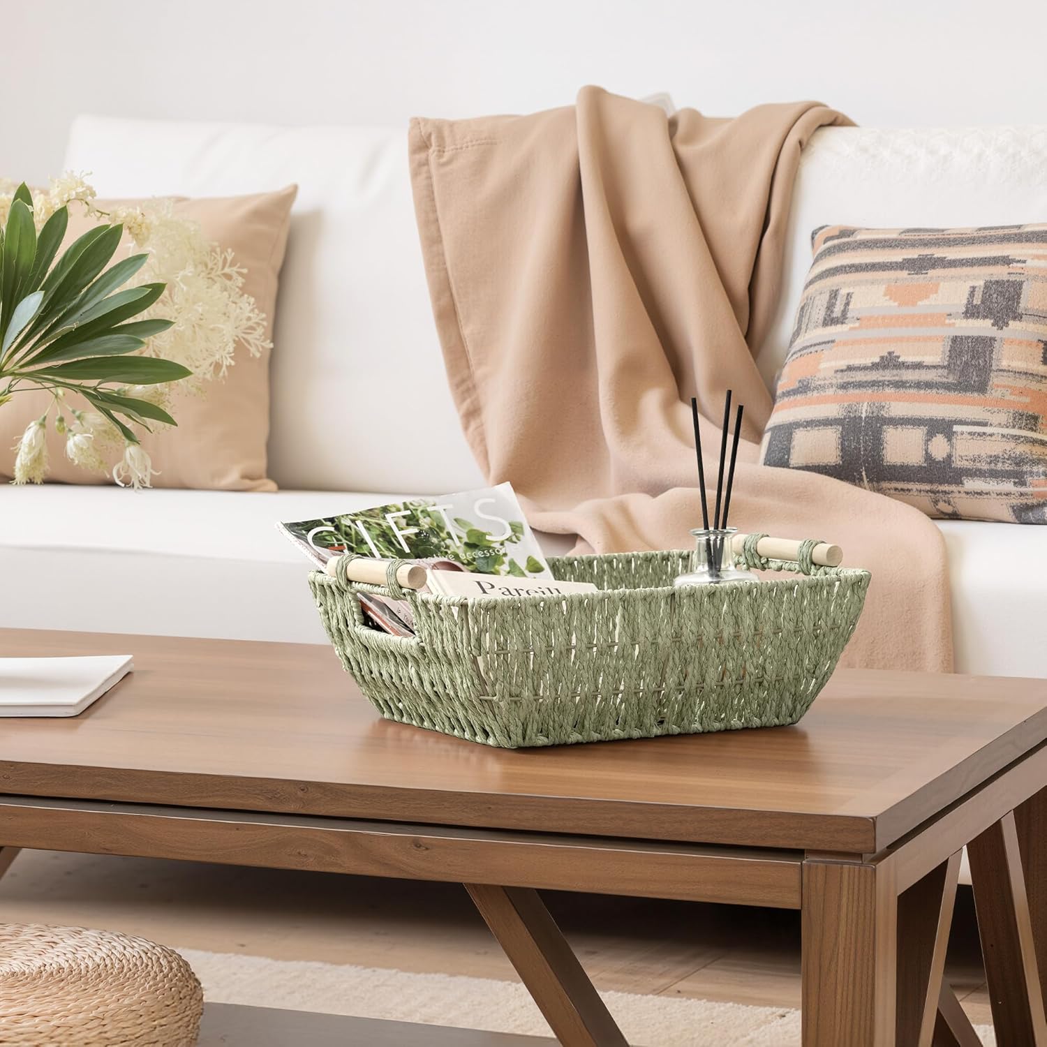 - Decorative Baskets: With its minimalist design, this woven basket adds warmth and style to any space. Ideal for the living room, bathroom, or bedroom, it keeps your items organized while enhancing your homeβs aesthetic.
