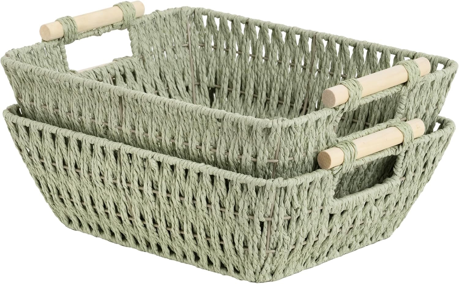 StorageWorks Large Wicker Storage Basket for Organizing with Wooden Handles, Toilet Paper Baskets for Bathroom, Bosana Green, 2-Pack
